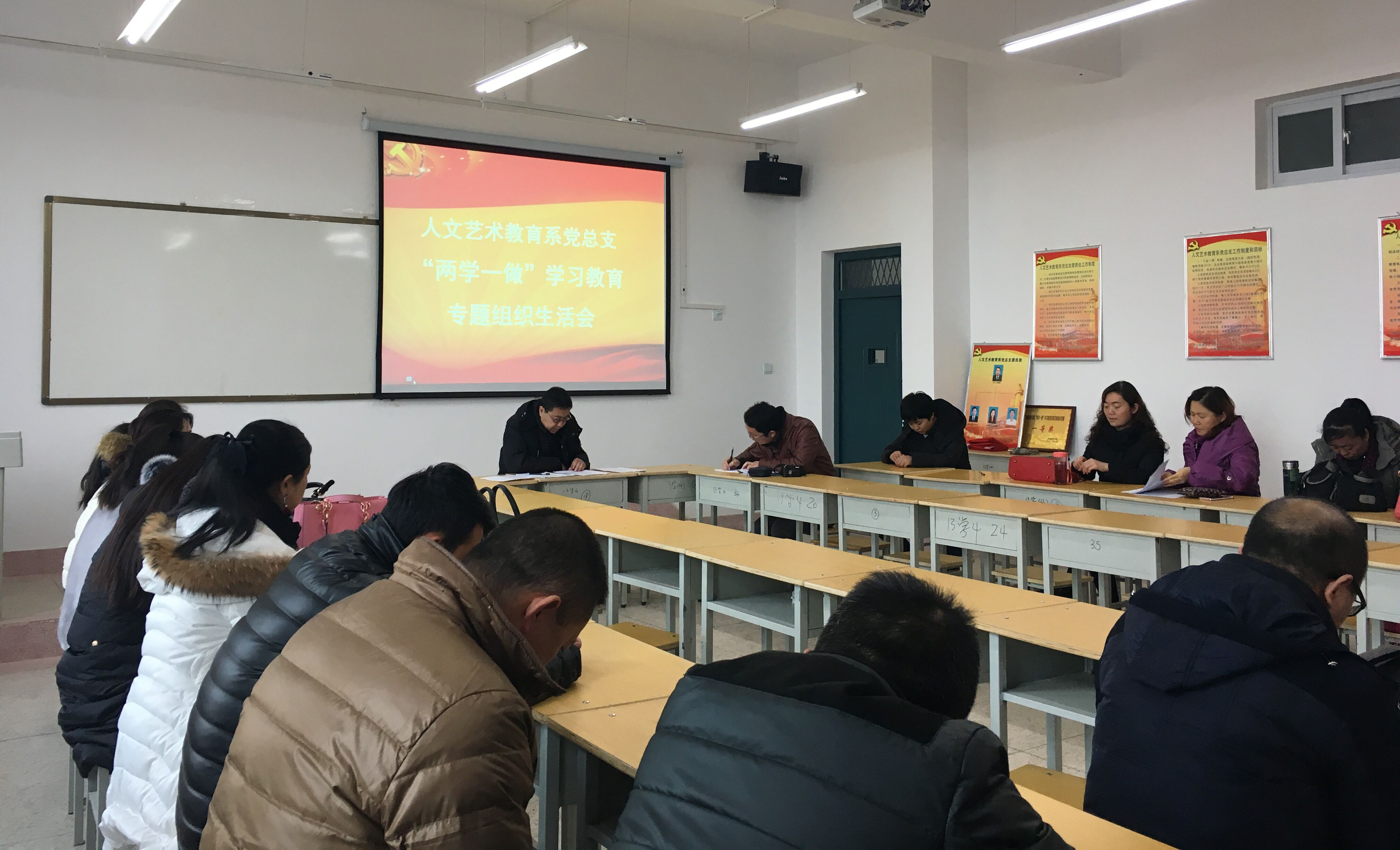 1月10日下午,人文藝術(shù)教育系黨總支在勵(lì)勤樓403黨員活動(dòng)室召開了“兩學(xué)一做”學(xué)習(xí)教育專題組織生活會(huì)和民主評(píng)議黨員大會(huì),會(huì)議由系黨總支書記胡靜峰同志主持,全體黨員及部分群眾參加了會(huì)議。