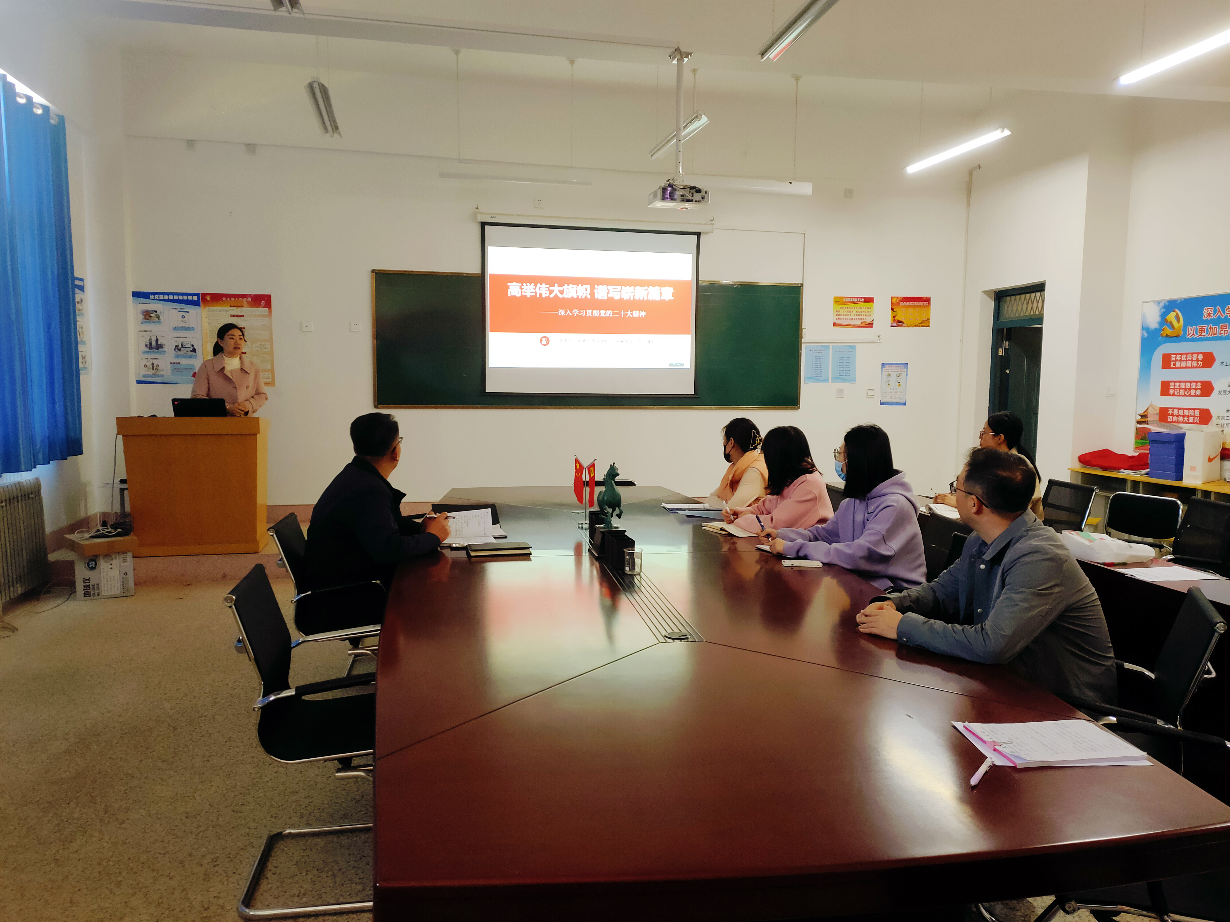 魏玲緊緊圍繞大會主題、主要成果、“新時代的偉大變革:取得歷史性成就和發(fā)生歷史性變革”“新時代的思想指引: 開辟馬克思主義中國化時代化的新境界”“新時代的使命任務(wù):以中國式現(xiàn)代化全面推進(jìn)中華民族偉大復(fù)興”“新時代的戰(zhàn)略舉措: 以頑強斗爭打開偉大事業(yè)發(fā)展新天地”“新時代的根本保證:堅定不移全面從嚴(yán)治黨”等主要內(nèi)容進(jìn)行了深入闡述和講解。全面解析黨的二十大精神,勉勵全體黨員教師要勇敢面對難題,穩(wěn)步提升教學(xué)質(zhì)量,為新時代高質(zhì)量教育發(fā)展奮斗。