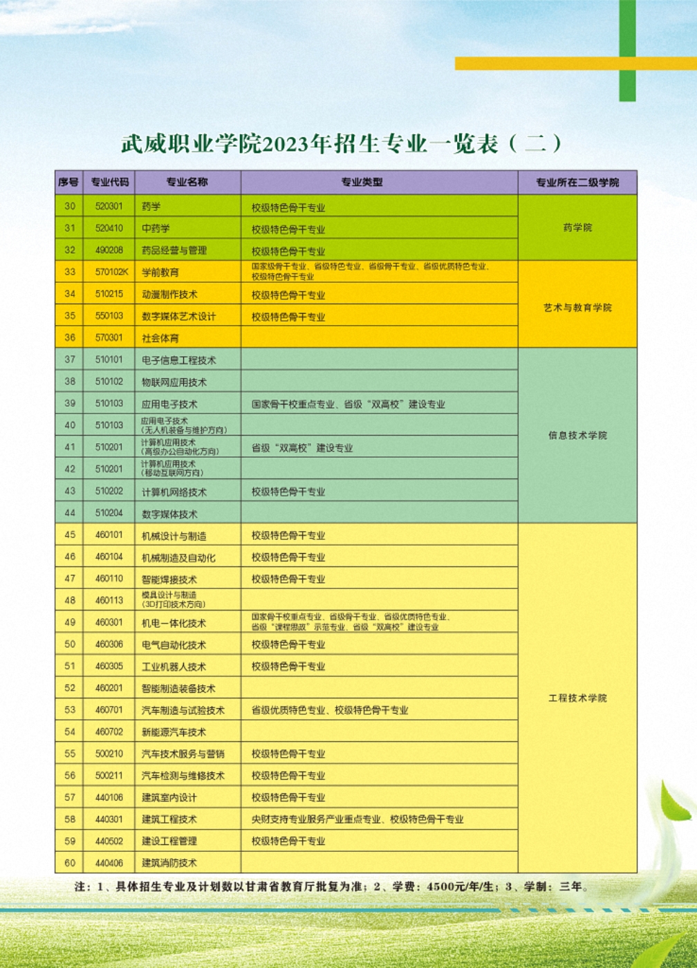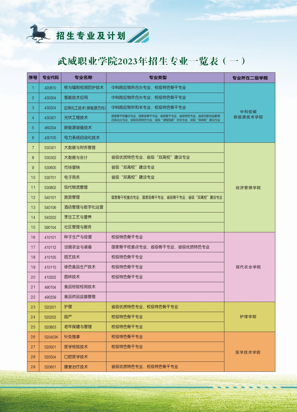 武威職業(yè)學(xué)院2023年招生簡(jiǎn)章
