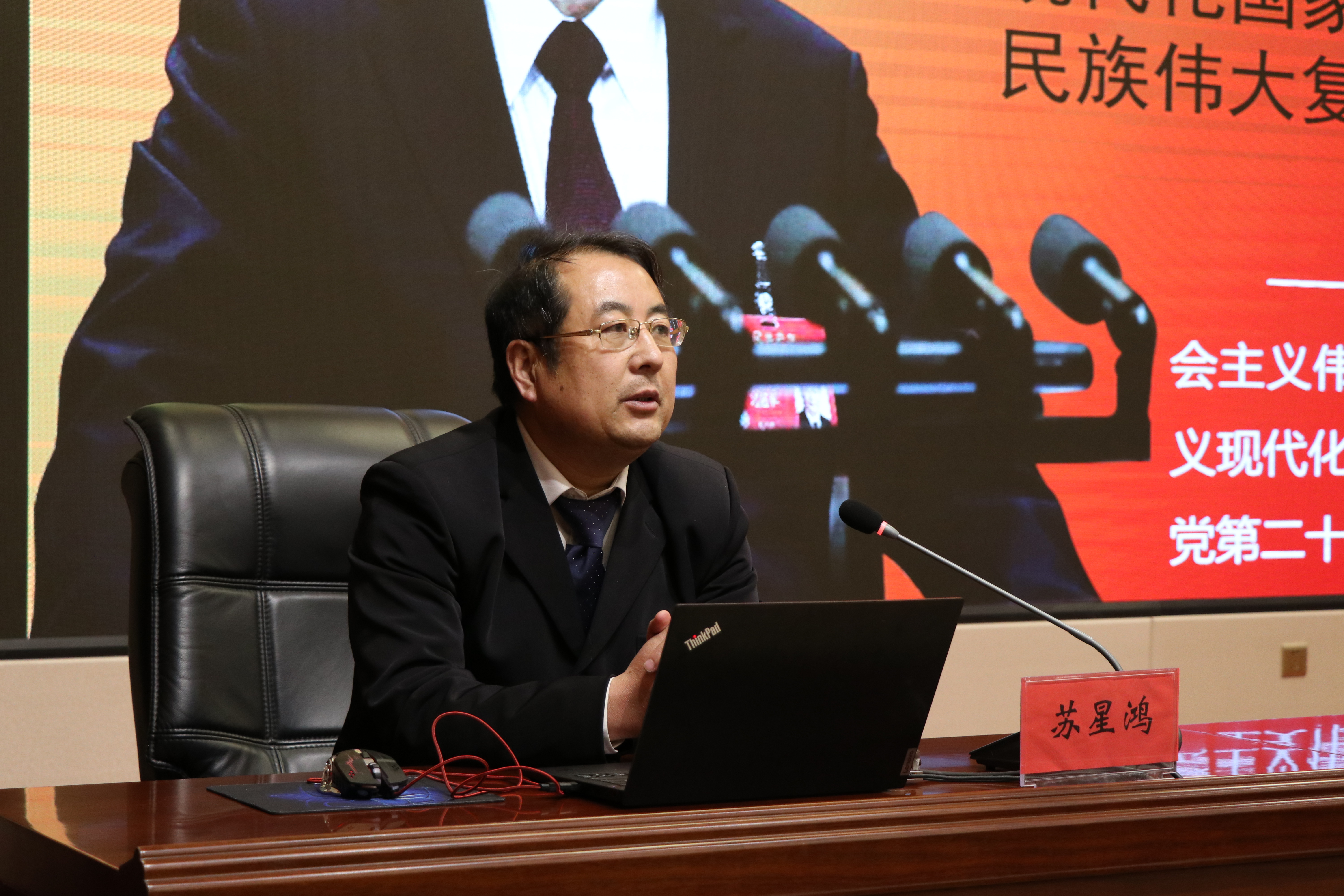蘇星鴻教授以《深刻把握黨的二十大精神的核心要義》為題,從黨的二十大召開的歷史背景和重大意義、過去五年的工作和新時代十年的偉大變革、開辟馬克思主義中國化時代化新境界的科學內涵、新時代新征程中國共產(chǎn)黨使命任務的豐富內涵、以黨的自我革命推進偉大的社會革命的實踐意義和“五個必由之路”的戰(zhàn)略意義六個方面進行了深入淺出的闡述,對師生深刻理解黨的二十大精神具有很強的啟發(fā)意義。