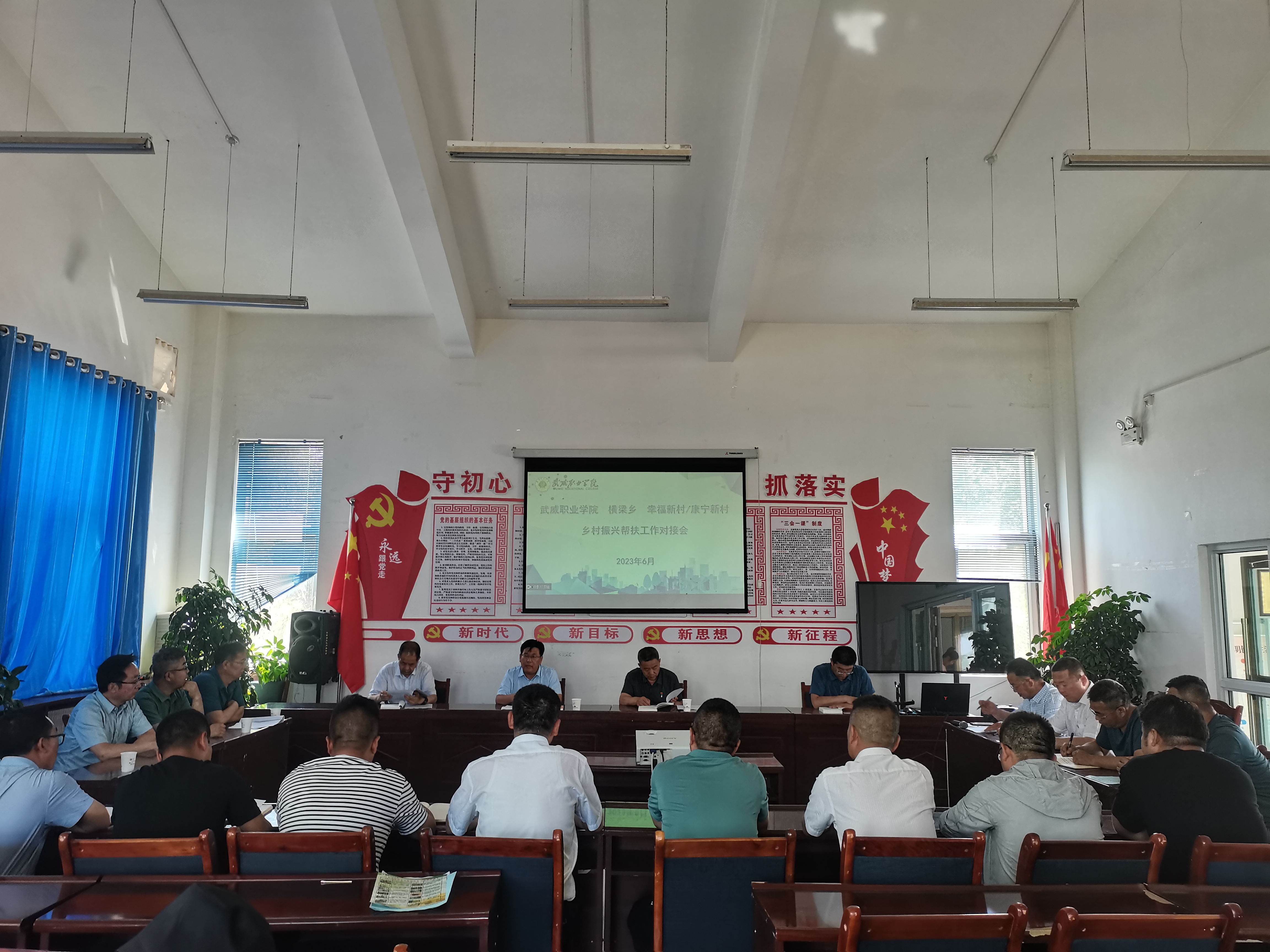 6月21日,學(xué)校專家團(tuán)隊赴古浪綠洲小鎮(zhèn)召開鄉(xiāng)村振興幫扶工作推進(jìn)會議。學(xué)校黨委書記、校長趙明教授,黨委副書記翟存祥教授,黨委委員、副校長張開禮教授,橫梁鄉(xiāng)黨委書記何文國,黨委副書記、鄉(xiāng)長張熹中,康寧新村黨支部書記兼主任劉建惠,幸福新村黨支部書記李文海出席會議,村兩委成員、學(xué)校相關(guān)部門負(fù)責(zé)人參加會議。