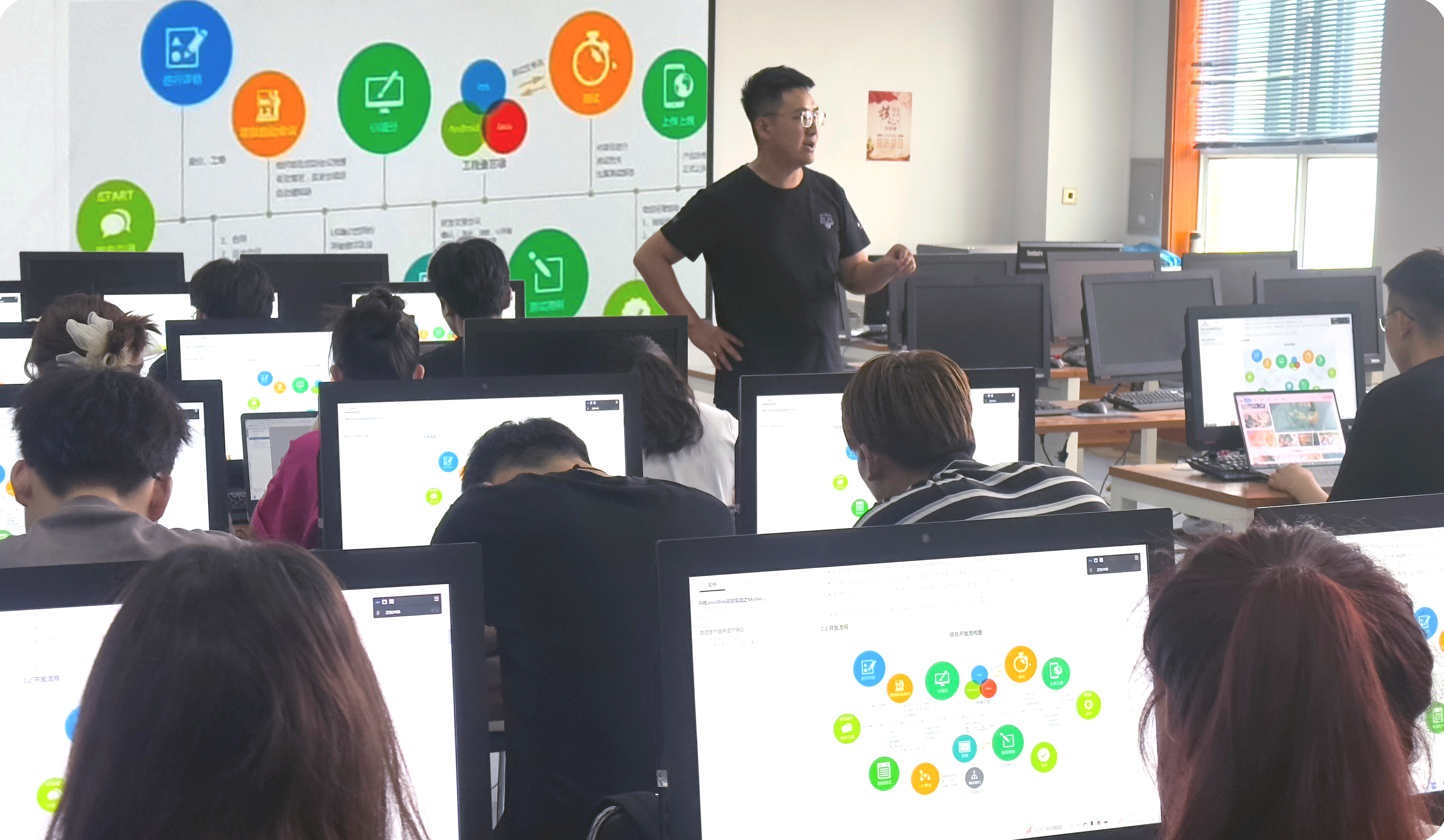 本次企業(yè)兼職教師專業(yè)課程教學(xué)活動持續(xù)一周,主要針對信息技術(shù)學(xué)院計算機移動互聯(lián)專業(yè)Java程序設(shè)計實踐實訓(xùn)和Web前端開發(fā)實踐實訓(xùn)課程進行;各位兼職教師在教育教學(xué)實踐中充分發(fā)揮自身專長和特長,將生動鮮活的企業(yè)崗位案例引入課堂,讓課堂教學(xué)真正活起來;以嫻熟精湛的技術(shù)技能去指導(dǎo)學(xué)生的實操,讓實訓(xùn)教學(xué)真正動起來,從而有效地將企業(yè)實踐優(yōu)勢轉(zhuǎn)化為學(xué)生增長知識與提高技能的優(yōu)勢,為申辦武威職業(yè)技術(shù)大學(xué)做出積極貢獻。