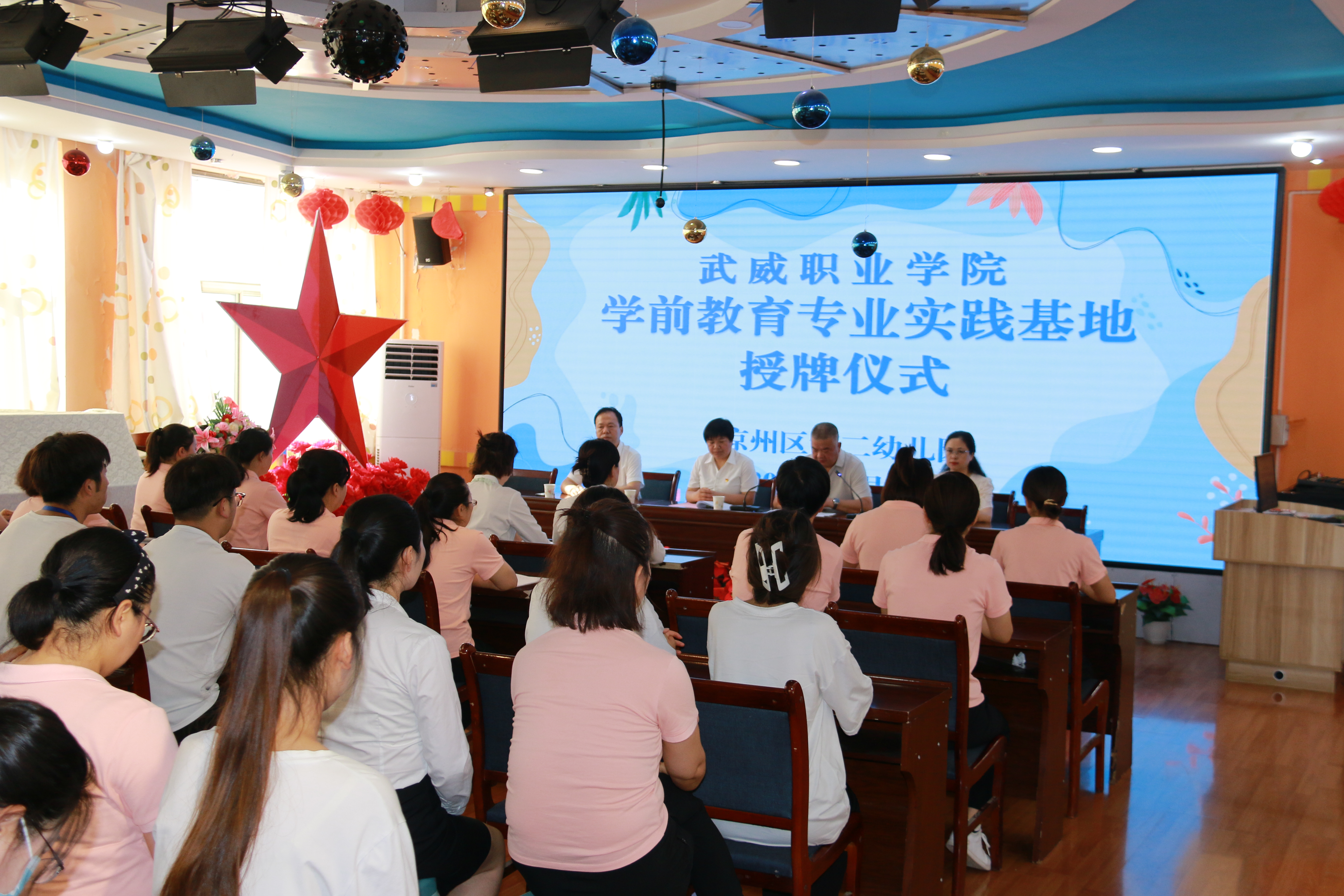 為加強(qiáng)學(xué)前教育專業(yè)建設(shè),強(qiáng)化學(xué)生實踐能力,創(chuàng)新實踐教學(xué)改革,近日,學(xué)校在市區(qū)幼兒園舉行學(xué)前教育實踐基地授牌儀式。學(xué)校黨委委員、副校長王守云,市區(qū)幼兒園主要負(fù)責(zé)人出席儀式,藝術(shù)與教育學(xué)院相關(guān)負(fù)責(zé)人、市區(qū)幼兒園教師代表以及學(xué)校見習(xí)學(xué)生參加儀式。