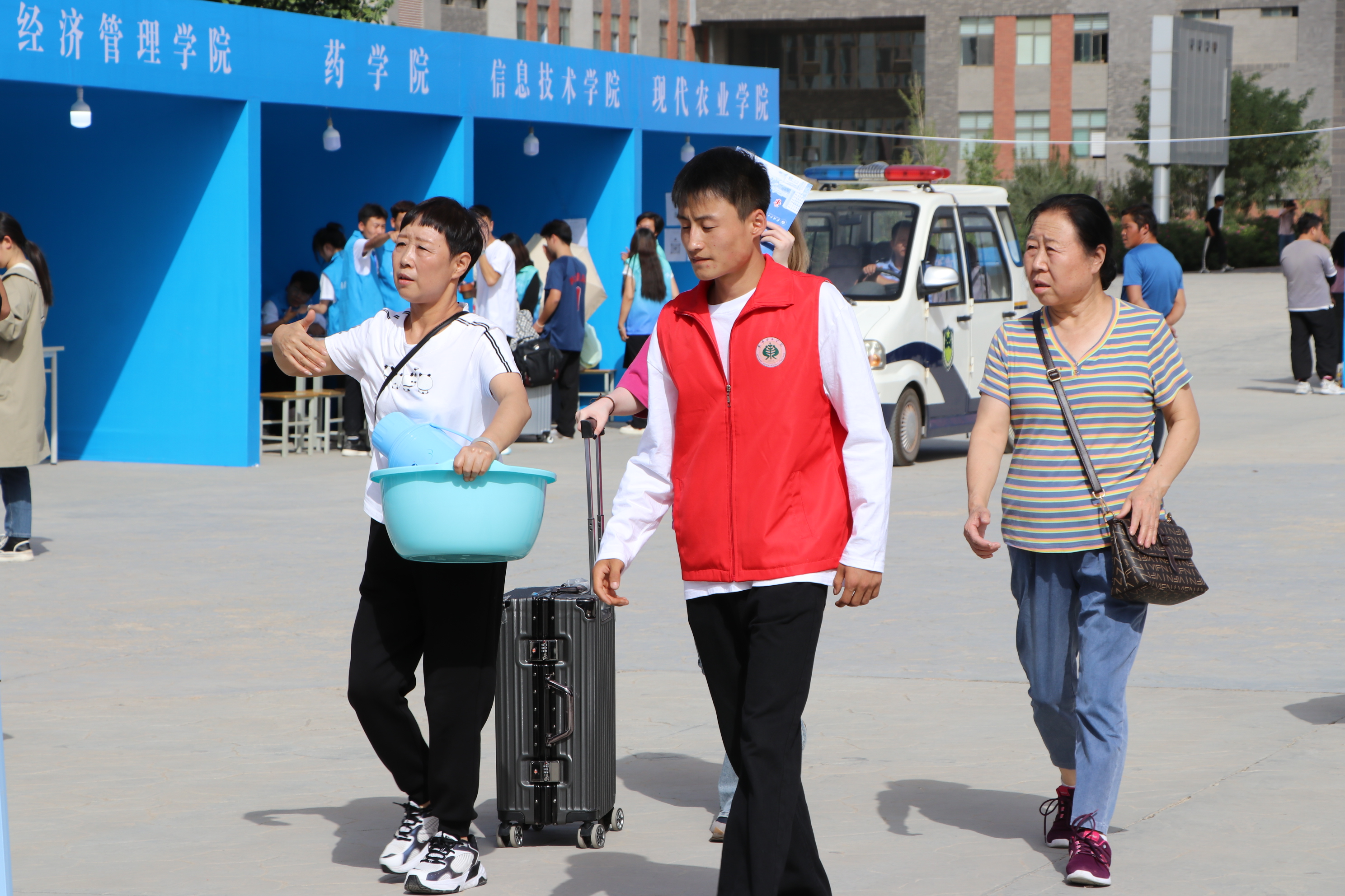 為做好迎新工作,學(xué)校各部門(mén)、二級(jí)學(xué)院精心組織,志愿者和工作人員為新生和家長(zhǎng)提供細(xì)致周到的服務(wù),讓新生和家長(zhǎng)第一時(shí)間就能感受到學(xué)校的熱情和暖心。校內(nèi)迎新站點(diǎn)前,一輛輛行李車、小推車虛位以待,志愿者們有條不紊,熱情洋溢,為新生提供一站式服務(wù),并耐心為家長(zhǎng)答疑解惑。學(xué)校開(kāi)通“綠色通道”,推出資助政策和各項(xiàng)措施,確保每一位新生安心入學(xué)、舒心生活。LED大屏滾動(dòng)播放學(xué)校2023年新生實(shí)時(shí)報(bào)到數(shù)據(jù),讓新生和家長(zhǎng)及時(shí)了解學(xué)校和報(bào)到情況。