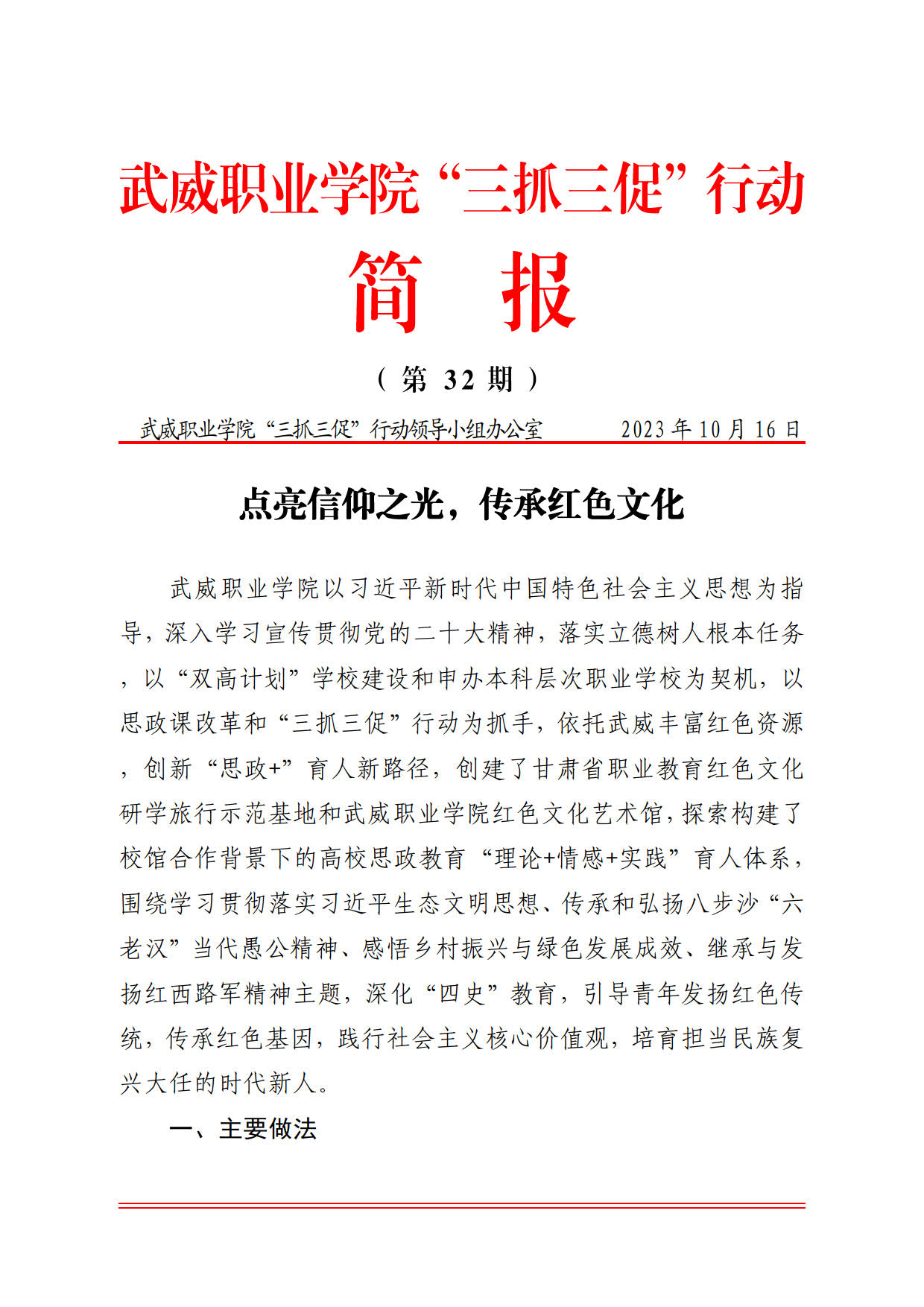 簡報第32期:點亮信仰之光,傳承紅色文化