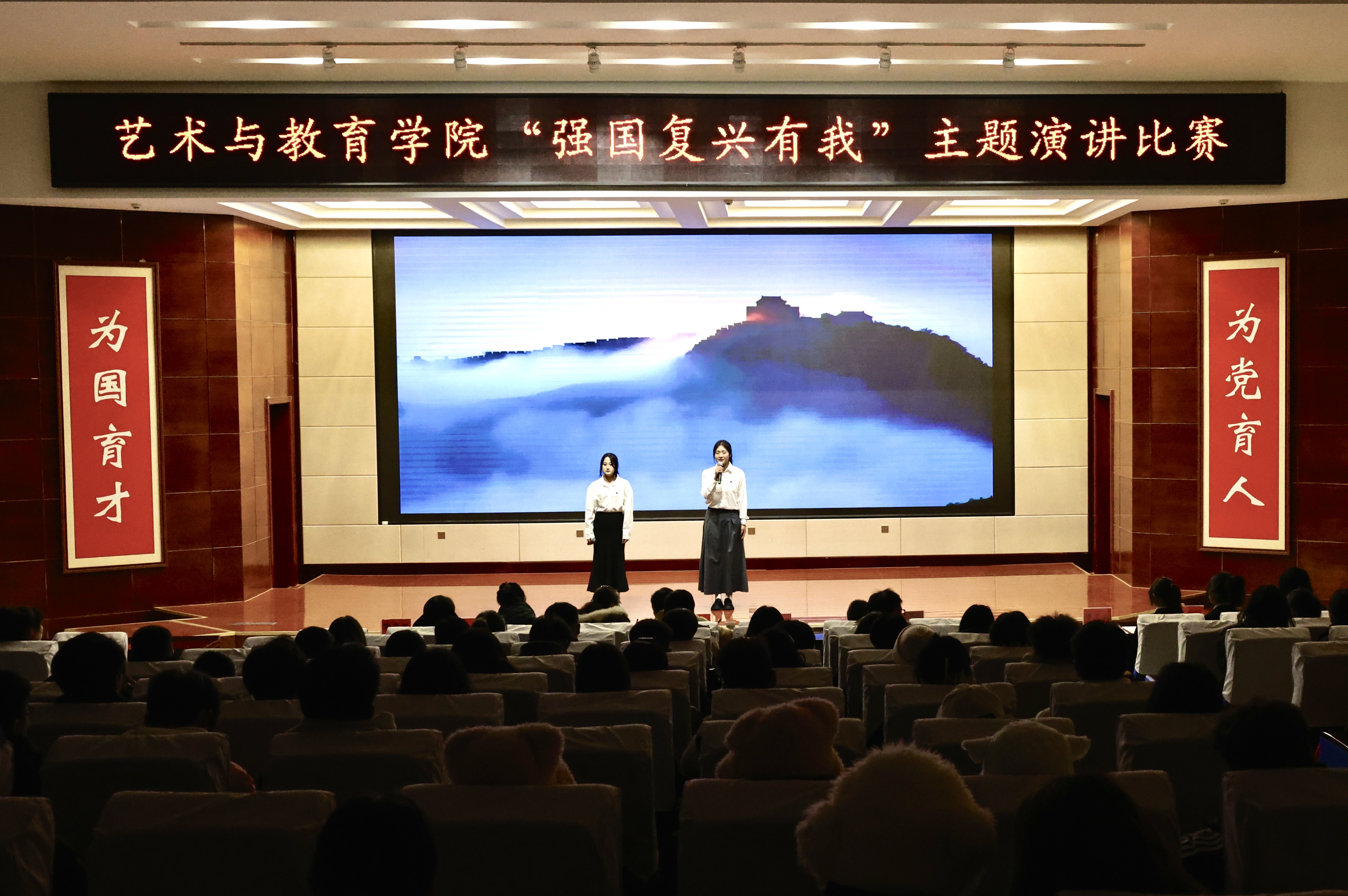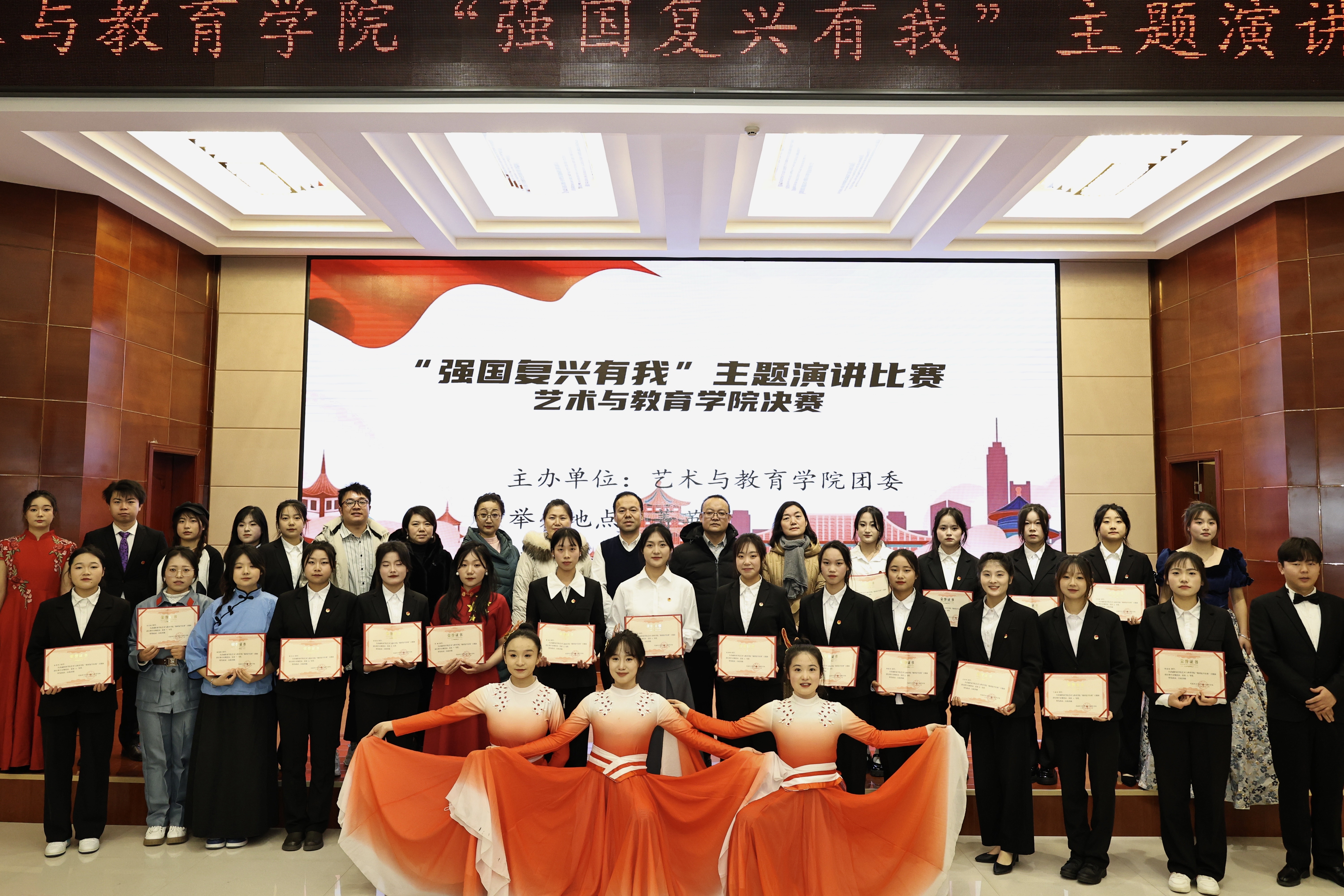 為弘揚愛國主義精神,激發(fā)學生愛國情懷,12月20日晚,藝術與教育學院團委在菁英廳舉辦“強國復興有我”主題演講比賽。學院200余名師生觀看了比賽。