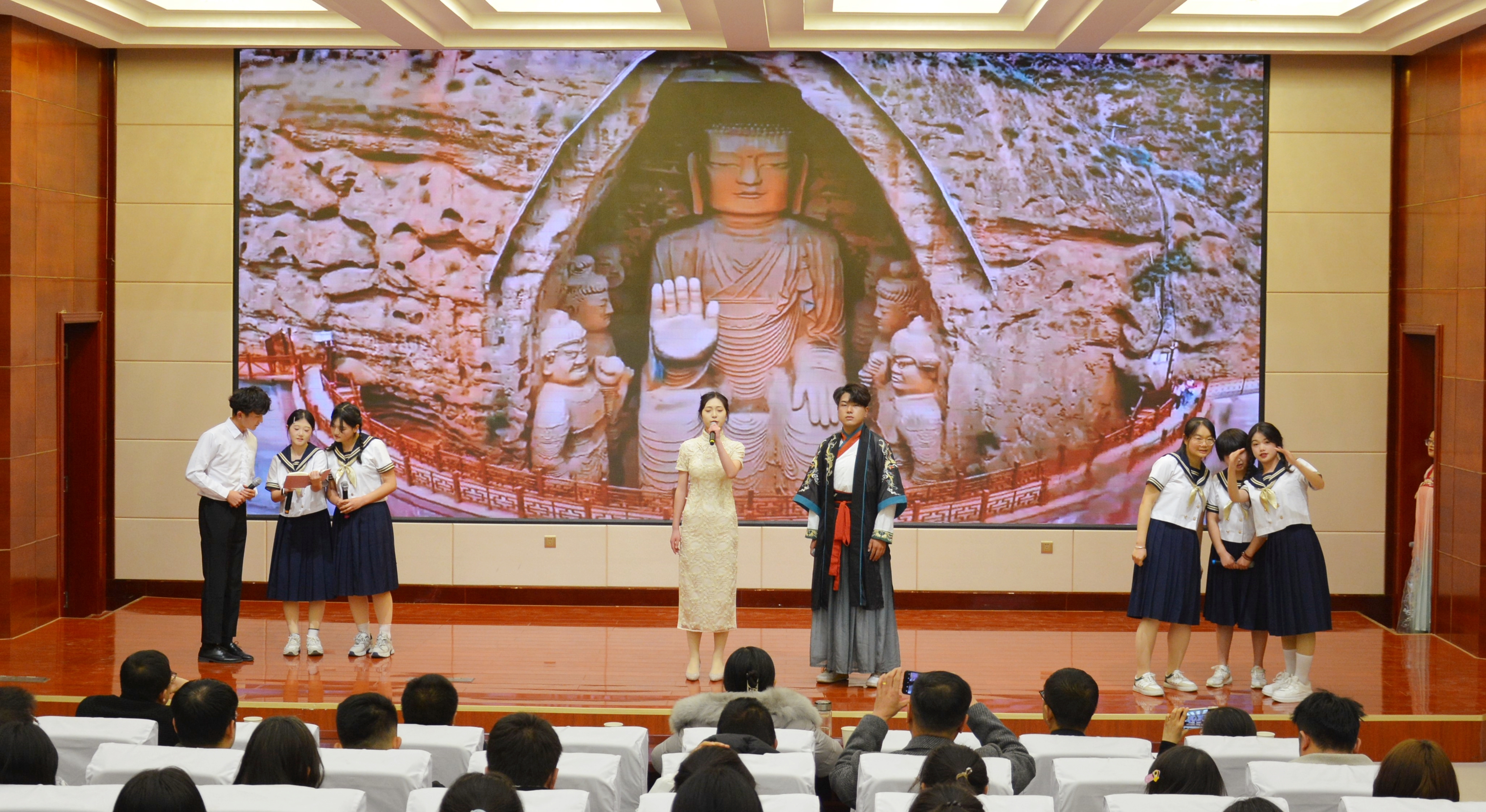 比賽現(xiàn)場精彩紛呈,現(xiàn)場氣氛異常熱烈,掌聲此起彼伏。節(jié)目以詩歌吟誦、伴舞、書法、國畫、武術(shù)、情景表演等豐富多彩的藝術(shù)形式,為現(xiàn)場觀眾打造出一場別開生面的涼州文化視聽盛宴。同學(xué)們激情洋溢,用澎湃真摯的情感演繹著經(jīng)典燦爛的磅礴詩篇,用跨越千年的對(duì)話勾勒出雄渾壯烈的漢武雄風(fēng),用鏗鏘有力的旋律編織出蕩氣回腸的時(shí)代頌歌,以青春奮斗的初心賡續(xù)著生生不息的五涼文化。