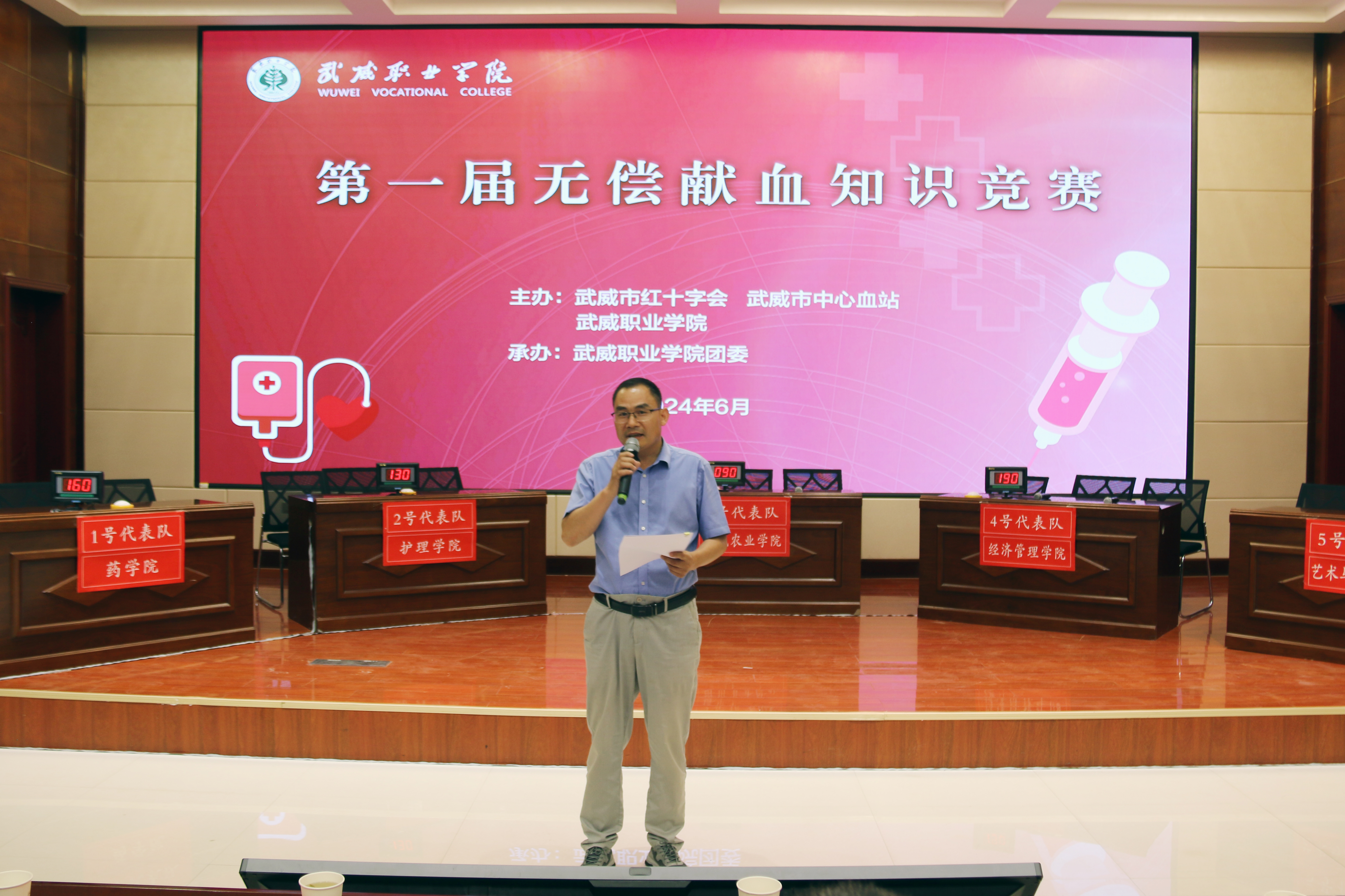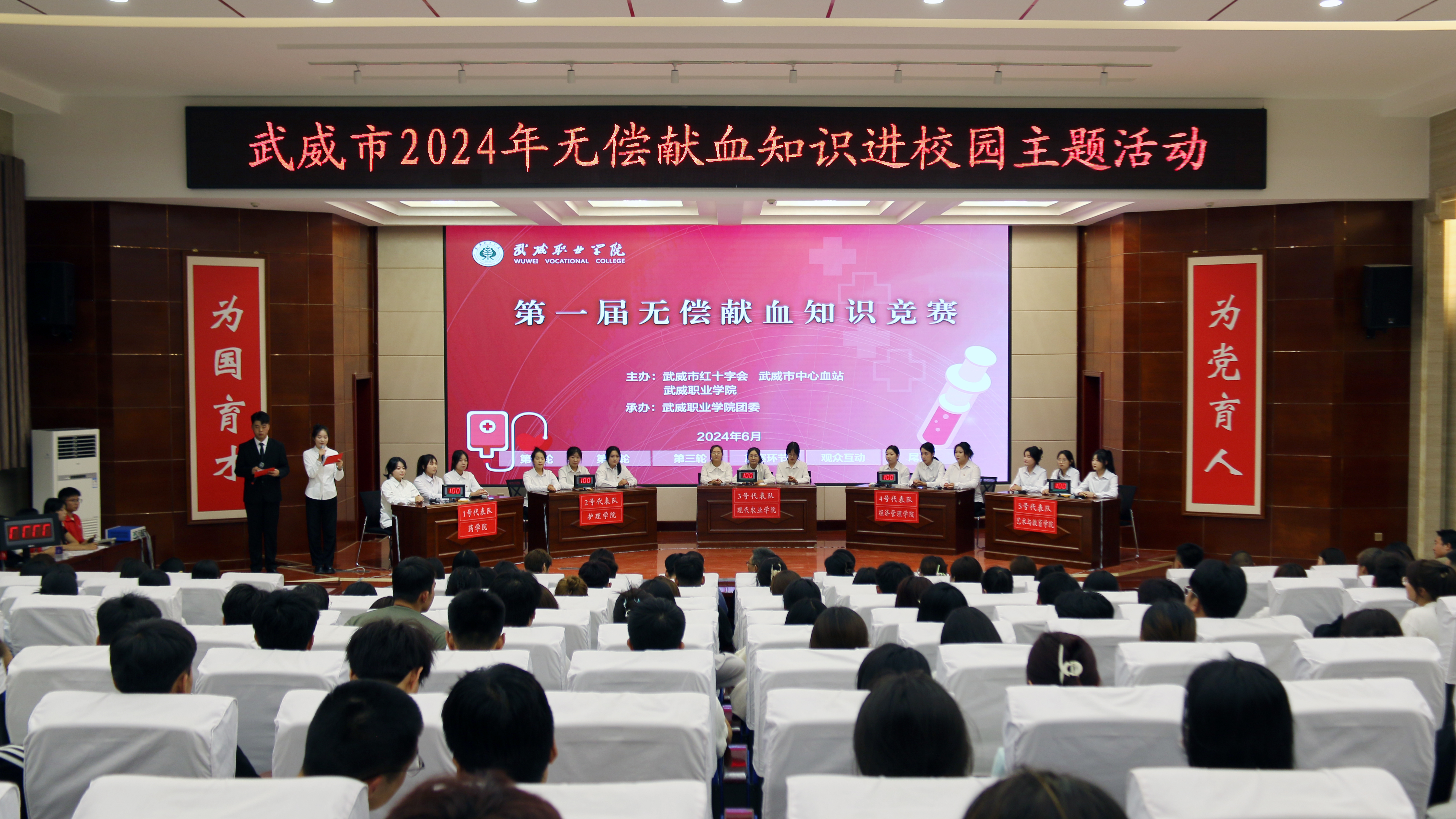 血液是生命的源泉,愛心是生命的曙光。6月17日,由武威職業(yè)學(xué)院、武威市紅十字會、武威市中心血站共同主辦的無償獻(xiàn)血知識競賽在菁英廳舉辦。