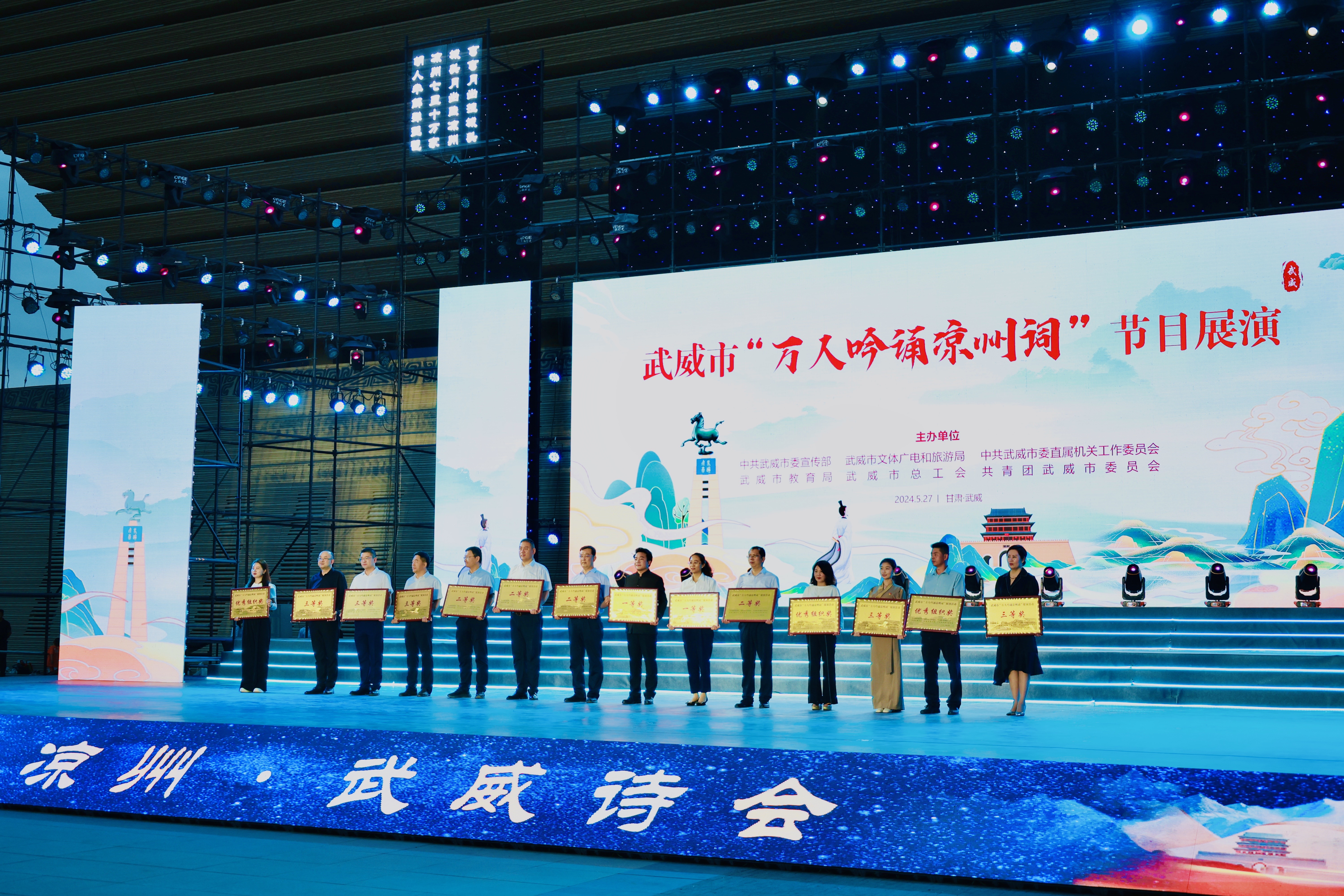 5月27日晚,武威市“萬人吟誦涼州詞”優(yōu)秀節(jié)目展演活動(dòng)在漢唐天馬城大漢賦館前舉行,并為“萬人吟誦涼州詞”比賽中的優(yōu)秀作品頒獎(jiǎng)。學(xué)校選送的節(jié)目《詩意涼州·迤邐踏歌》在15個(gè)展演節(jié)目中榮獲一等獎(jiǎng)。