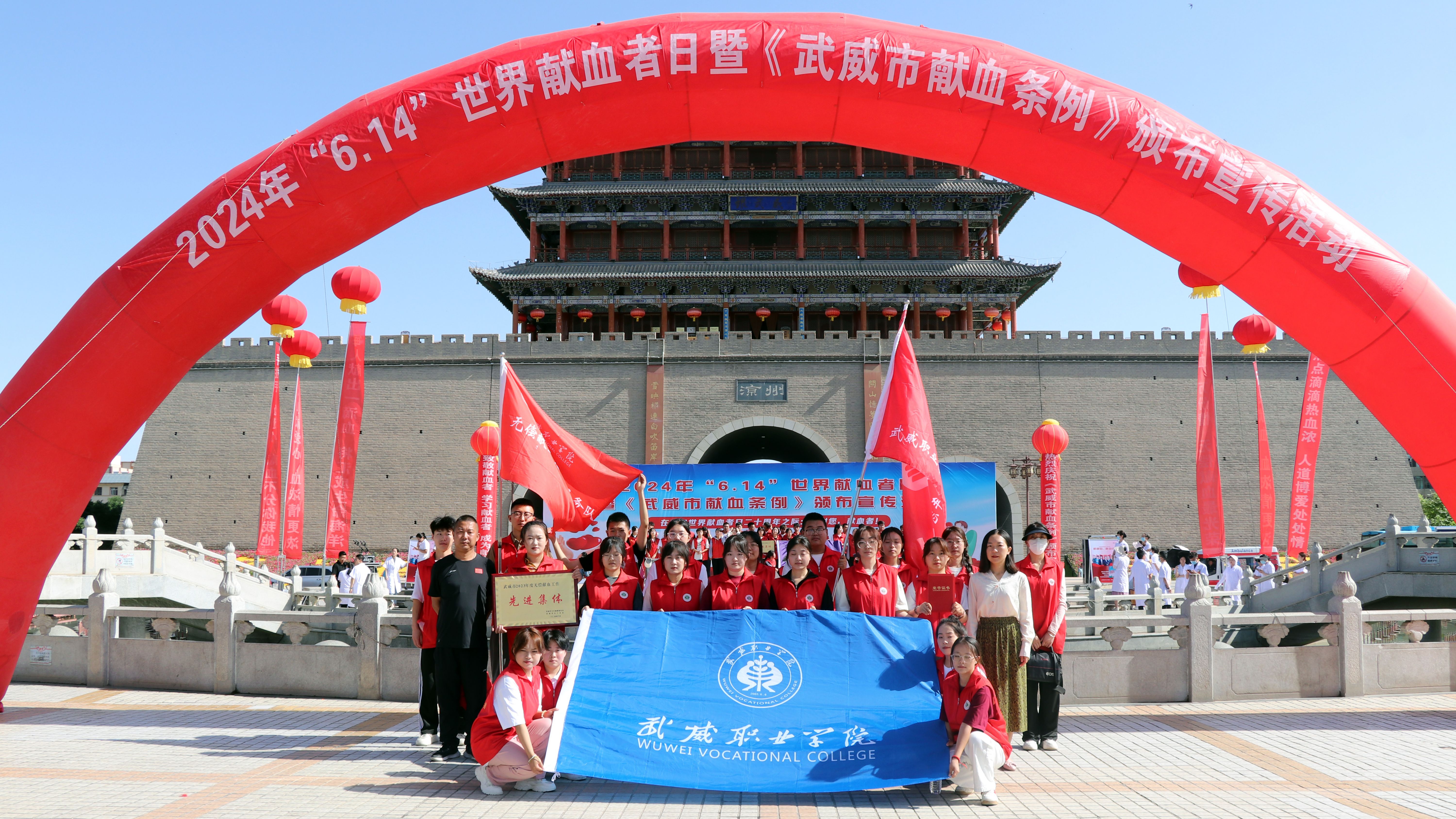 6月14日上午,我市2024年“6·14”世界獻血者日暨《武威市獻血條例》頒布宣傳活動在南城門廣場舉辦。市人大常委會副主任劉光美宣讀《條例》頒布公告,并為全市2023年度無償獻血工作先進集體、應(yīng)急獻血先進集體和先進個人頒發(fā)獎牌和榮譽證書。學校被評為武威市2023年度無償獻血工作先進集體,1名教師被評為先進個人。