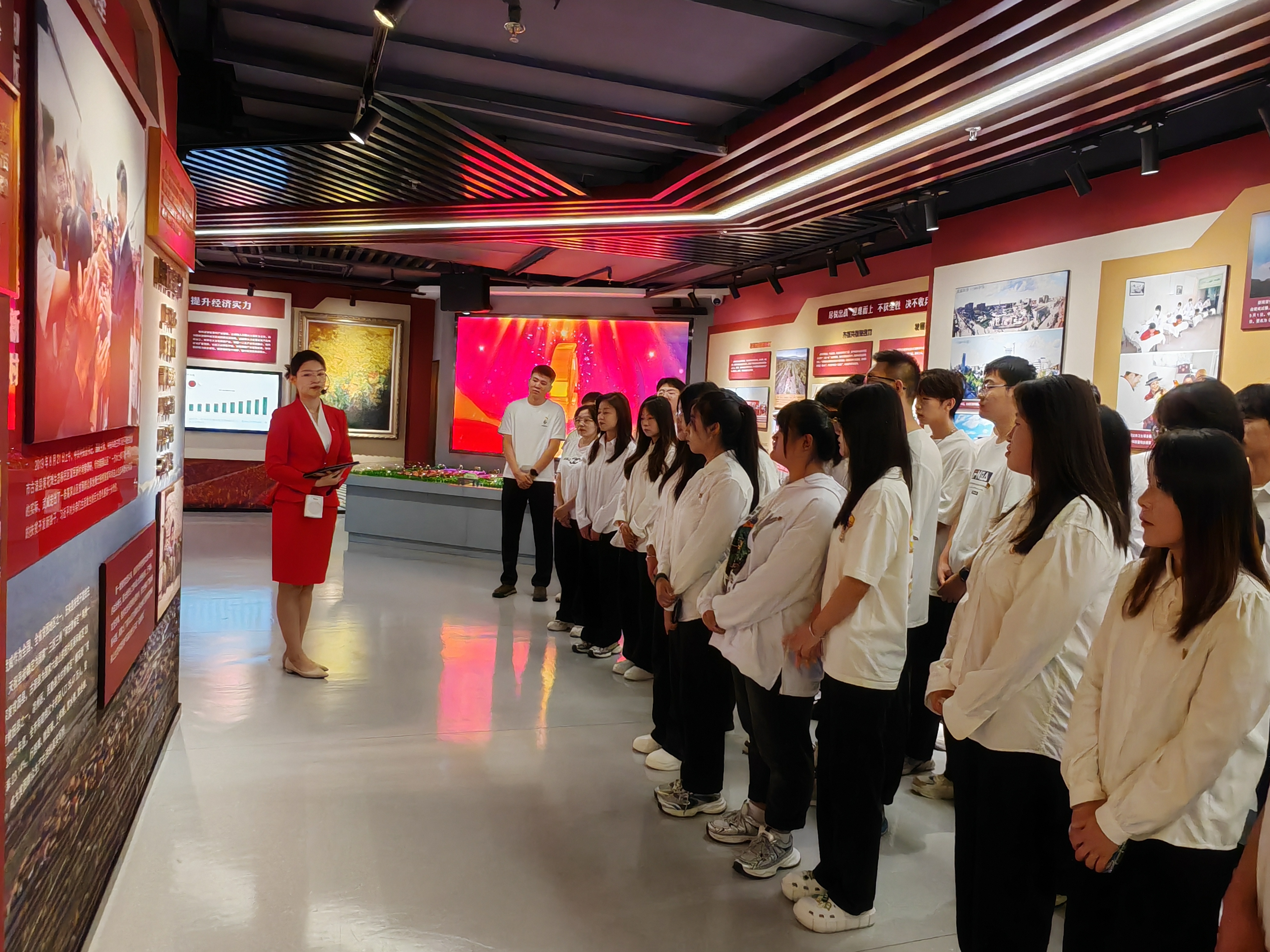 師生們?cè)谥v解員的帶領(lǐng)下依次參觀了教育館的序廳、主廳、智慧黨建廳、紅色文創(chuàng)廳、尾廳以及初心講堂。每一個(gè)展廳都承載著豐富的歷史內(nèi)涵,記錄了中國(guó)共產(chǎn)黨在不同歷史時(shí)期帶領(lǐng)人民取得的偉大成就。同學(xué)們認(rèn)真聆聽(tīng)講解員的解說(shuō),仔細(xì)觀看館內(nèi)展出的珍貴圖片、文獻(xiàn)資料、歷史實(shí)物和視頻影像,全面了解了武威人民在黨的領(lǐng)導(dǎo)下,一步步克服困難、取得勝利的過(guò)程。隨后師生們觀看了紅色專題片《先鋒之光》。影片生動(dòng)再現(xiàn)了無(wú)數(shù)革命先烈為了國(guó)家獨(dú)立、民族解放和人民幸福所付出的巨大犧牲與貢獻(xiàn),從影片中汲取了愛(ài)國(guó)、拼搏、團(tuán)結(jié)和克難的精神力量。