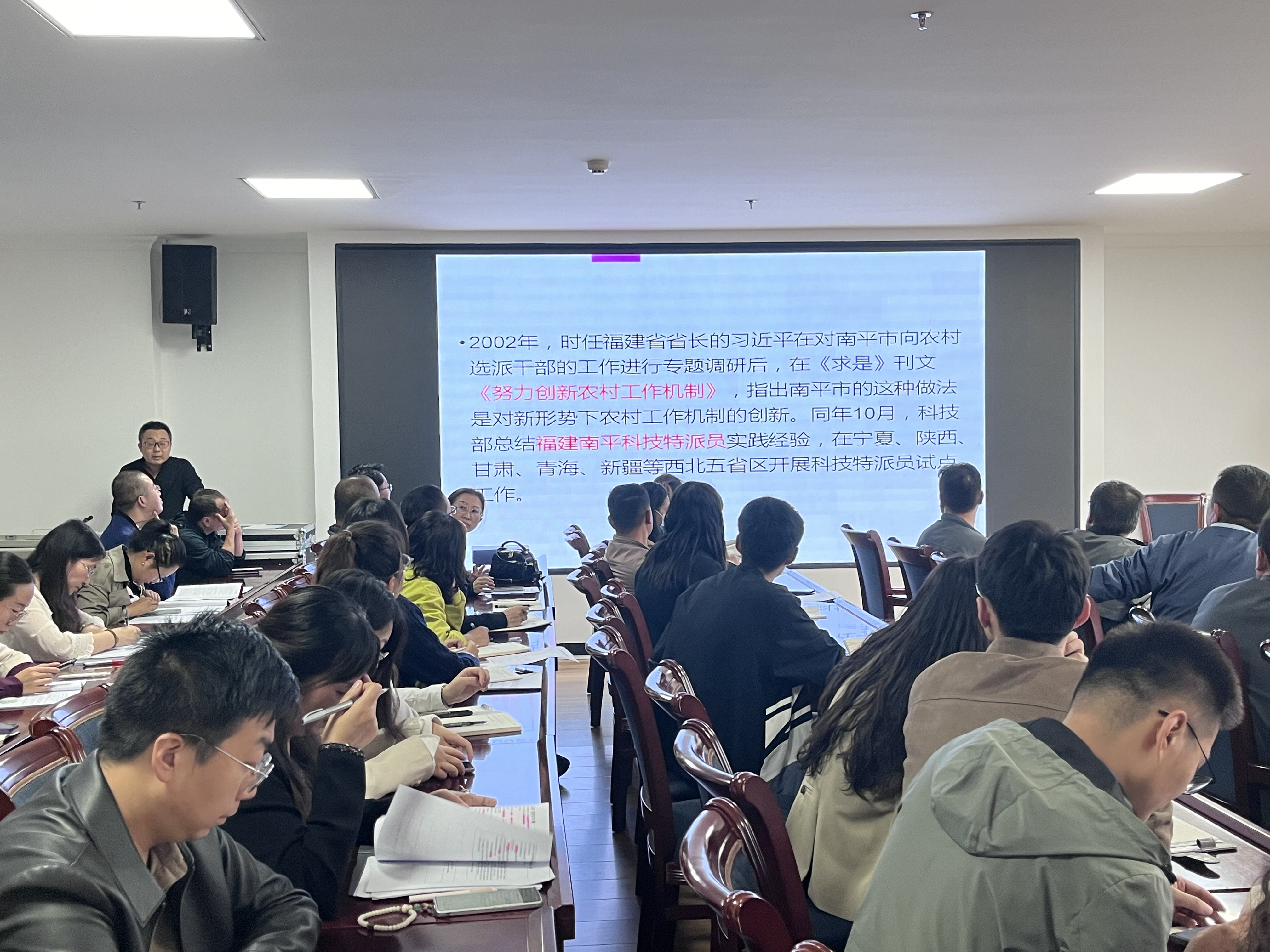 首先,科技處處長(zhǎng)蔡柱山帶領(lǐng)科技特派員及全體工作人員學(xué)習(xí)了《習(xí)近平總書記關(guān)于科技特派員工作指示精神摘錄》《武威市科技特派員管理辦法》《武威市2024年科技特派員工作要點(diǎn)》《武威職業(yè)學(xué)院科技特派員、“三區(qū)”科技人才管理辦法》等文件精神。會(huì)議開展了交流活動(dòng),現(xiàn)場(chǎng)氣氛活躍,互動(dòng)頻繁。4名科技特派員優(yōu)秀代表發(fā)言,分享了自己在科技服務(wù)中的收獲感想,激勵(lì)大家持續(xù)開展科技服務(wù)工作,增強(qiáng)做好科技特派員工作的責(zé)任感和使命感。最后,蔡柱山作總結(jié)講話,提出了工作要求及希望,指出各位科技特派員和“三區(qū)”科技人才要加強(qiáng)理論學(xué)習(xí),不斷提升科技服務(wù)能力;要堅(jiān)持創(chuàng)新實(shí)踐,全力推進(jìn)工作走深走實(shí);要強(qiáng)化示范引領(lǐng),努力打造典型科技創(chuàng)新支撐能力。