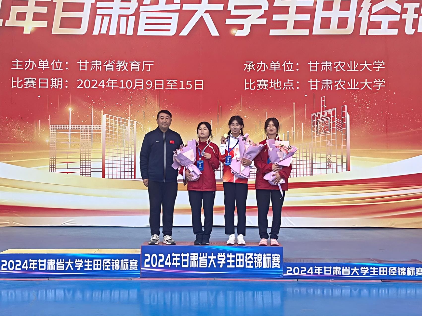 10月9日至15日,由省教育廳主辦的2024年甘肅省大學(xué)生田徑錦標(biāo)賽在甘肅農(nóng)業(yè)大學(xué)舉行。我校運(yùn)動(dòng)健兒在比賽中獲得3金、1銀的好成績,13個(gè)賽項(xiàng)進(jìn)入決賽取得名次,2位教練員獲得“優(yōu)秀教練員”榮譽(yù)稱號(hào),學(xué)校榮獲“體育道德風(fēng)尚獎(jiǎng)”,為我校贏得了榮譽(yù)。