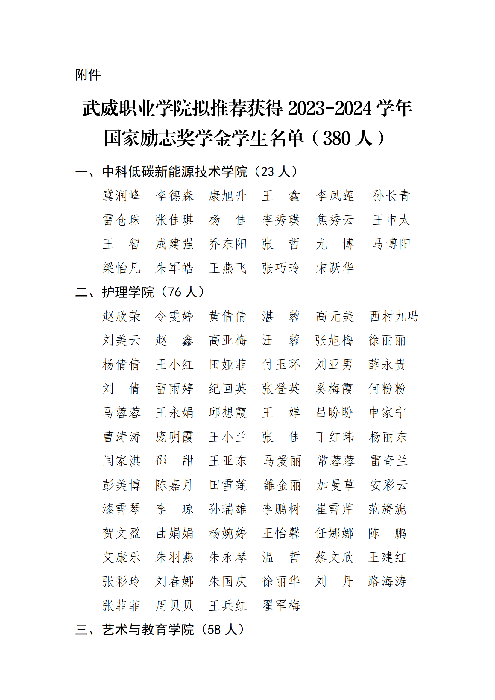 武威職業(yè)學(xué)院關(guān)于2023-2024學(xué)年學(xué)院獎(jiǎng)學(xué)金評(píng)選結(jié)果的公示