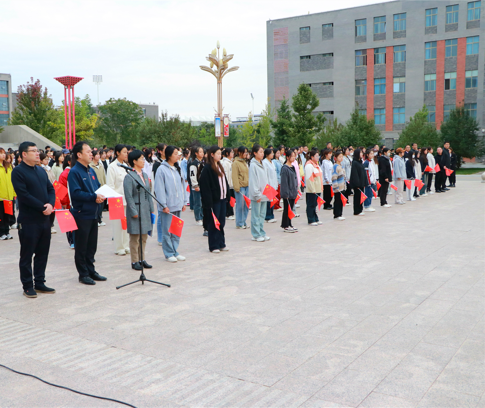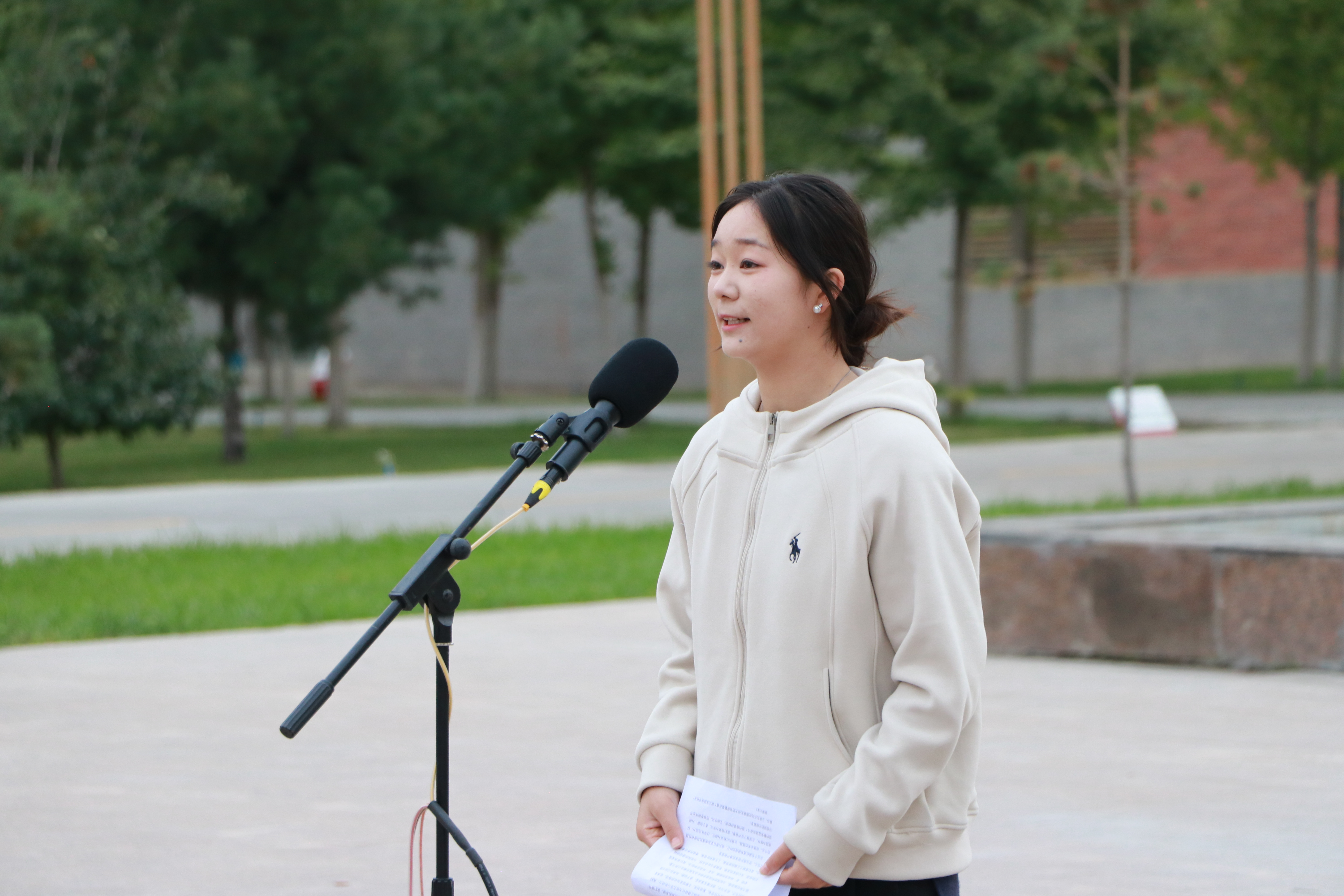 優(yōu)秀學(xué)生代表、藝術(shù)與教育學(xué)院2023級(jí)學(xué)前教育專業(yè)的馬青妍同學(xué)進(jìn)行了國(guó)旗下的演講,她的演講激勵(lì)著在場(chǎng)的每一個(gè)人,表達(dá)了對(duì)祖國(guó)的熱愛和對(duì)未來的期許。