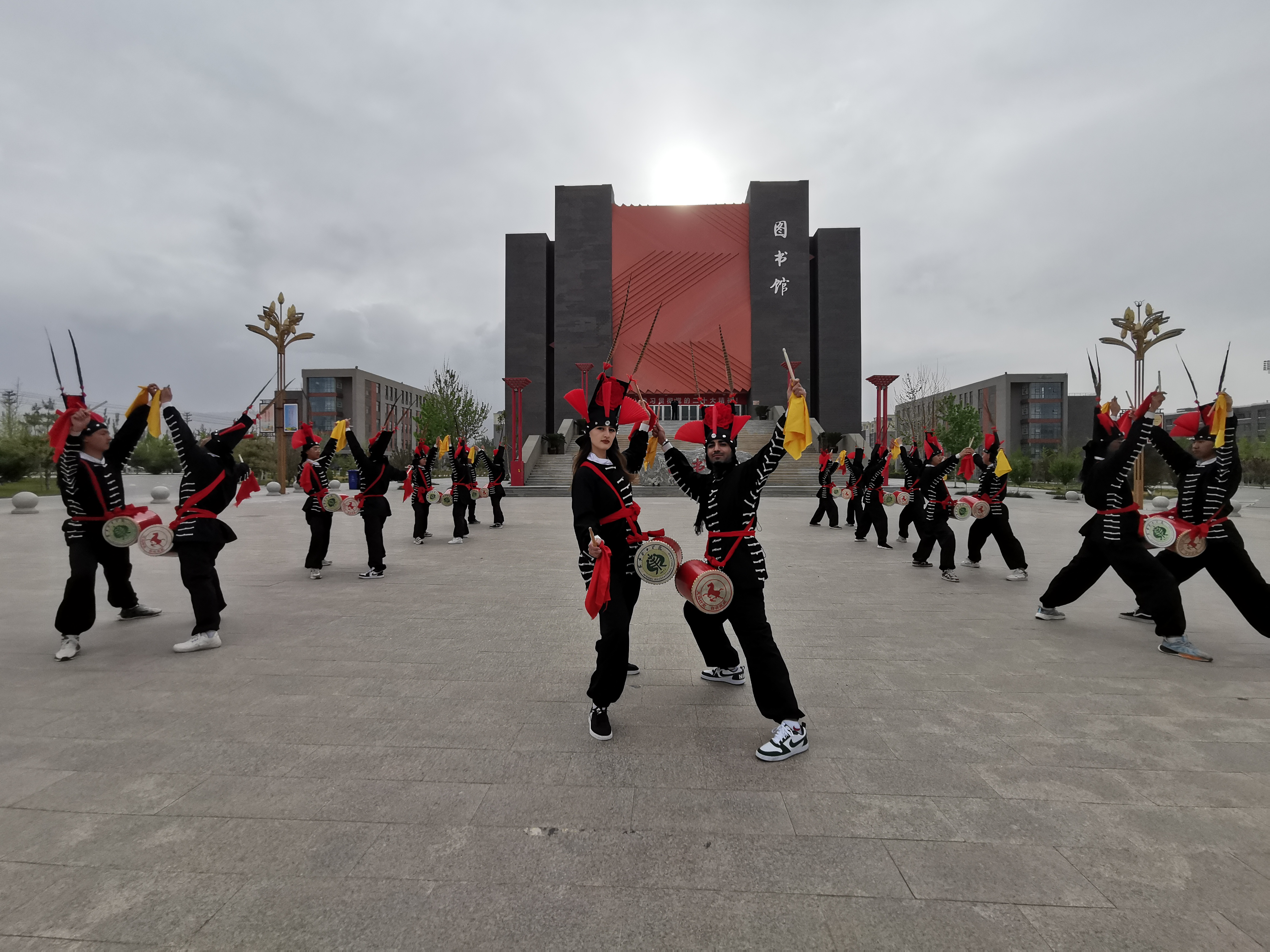 -- Foreign students practised beating Fighting Drum that is a regional Intangible Cultural Heritage