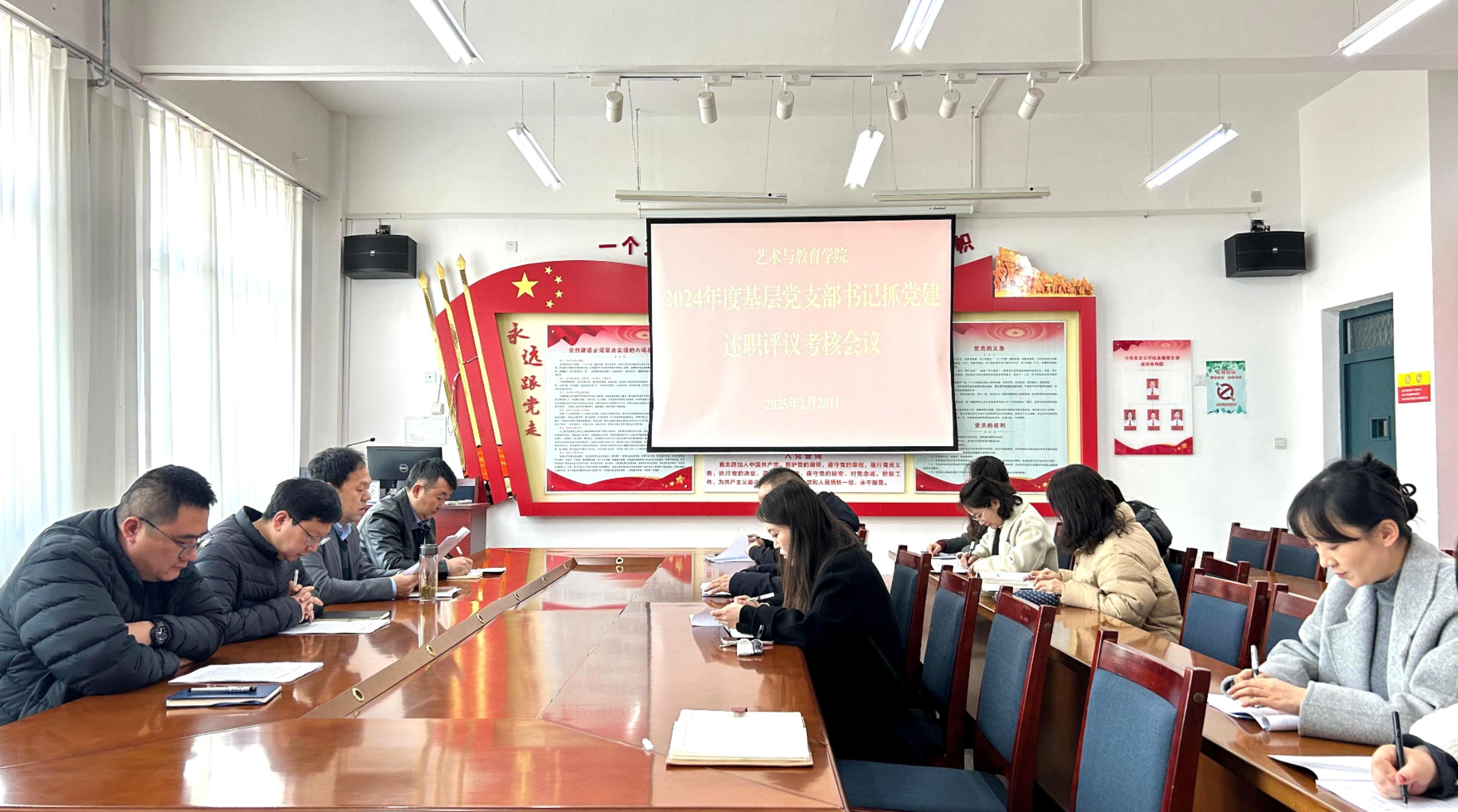 為深入學習貫徹習近平新時代中國特色社會主義思想和黨的二十屆三中全會精神,全面落實新時代黨的建設(shè)總要求,2月28日下午,藝術(shù)與教育學院2024年度基層黨支部書記抓黨建述職評議考核大會在勵勤樓209會議室召開。學院領(lǐng)導班子成員、各黨支部書記及委員、黨員代表出席會議。會議通過現(xiàn)場述職、民主評議等環(huán)節(jié)全面檢視基層黨建工作成效,黨總支書記王政主持會議并作總結(jié)講話。