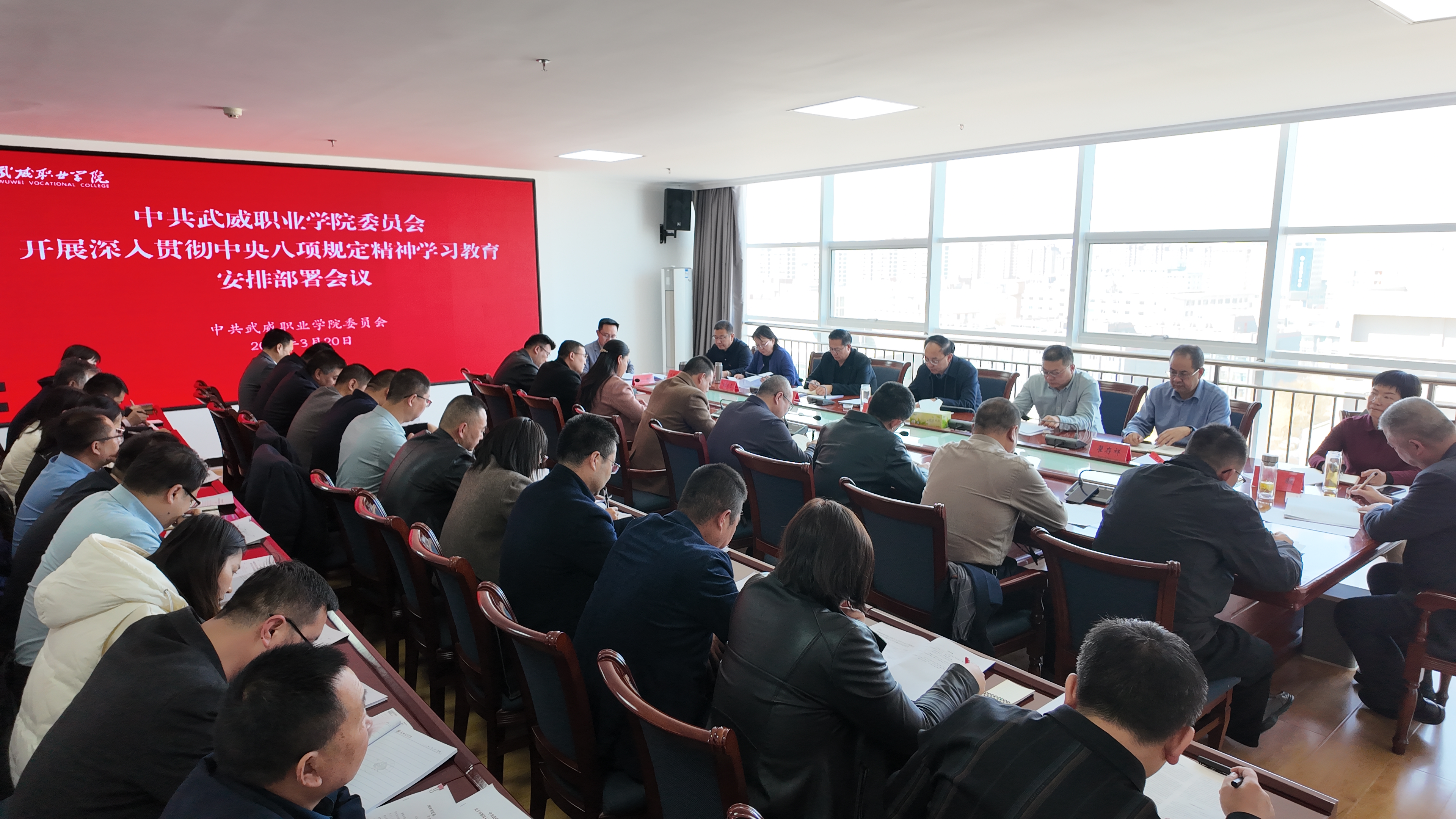 3月20日,學(xué)校黨委召開深入貫徹中央八項(xiàng)規(guī)定精神學(xué)習(xí)教育安排部署會(huì)議,認(rèn)真學(xué)習(xí)貫徹習(xí)近平總書記關(guān)于深入貫徹中央八項(xiàng)規(guī)定精神學(xué)習(xí)教育的重要講話和重要指示批示精神,對(duì)全校開展學(xué)習(xí)教育進(jìn)行全面安排部署。會(huì)議由黨委書記王宏主持,學(xué)校黨委領(lǐng)導(dǎo)班子成員,各基層黨組織書記,各部門負(fù)責(zé)人參加會(huì)議,校長李海軍列席會(huì)議。