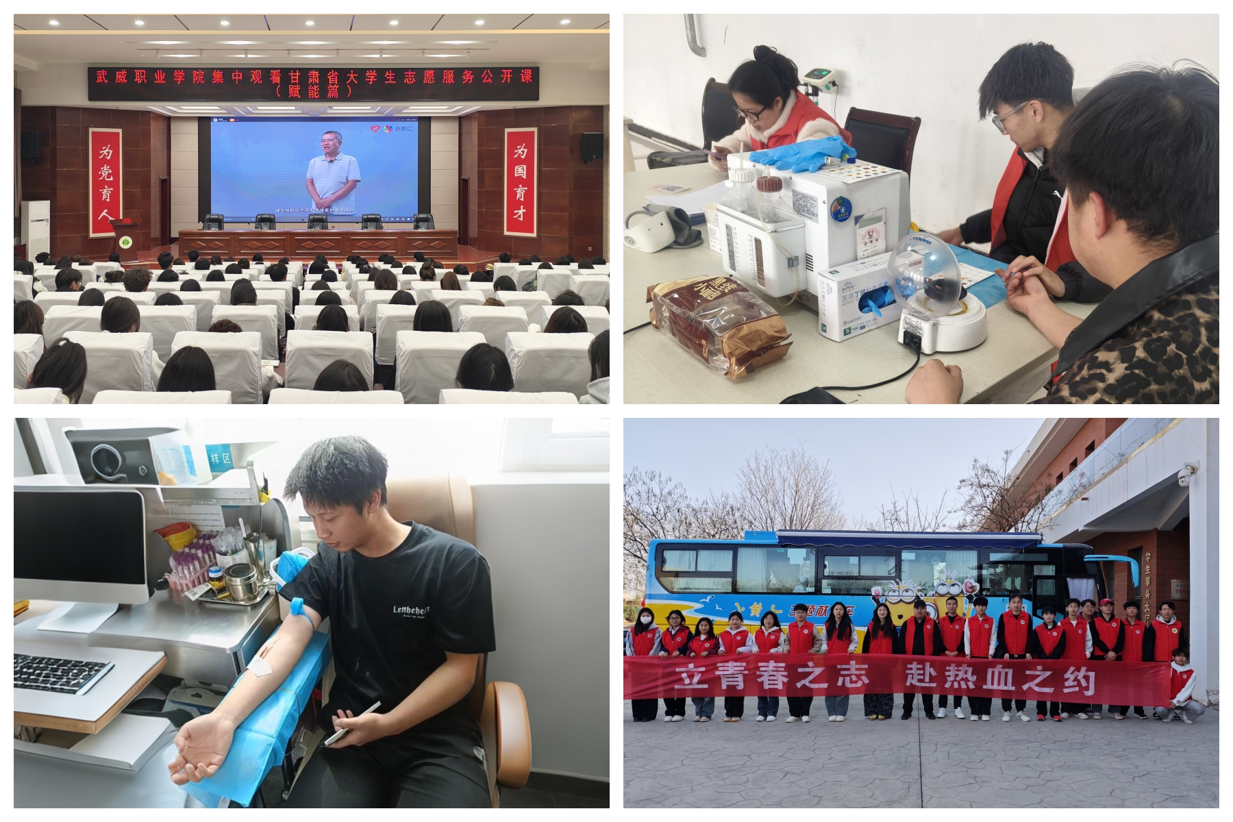 開展無償獻(xiàn)血活動。3月24日,校團(tuán)委邀請市中心血站工作人員在學(xué)校開展“愛心無界 獻(xiàn)血有愛”無償獻(xiàn)血知識講座,220名有獻(xiàn)血意向的同學(xué)聆聽講座。3月26日-28日,校團(tuán)委聯(lián)系市中心血站在學(xué)校開展“立青春之志 赴熱血之約”無償獻(xiàn)血活動,100名志愿者累計捐獻(xiàn)熱血20700ml,為學(xué)校無償獻(xiàn)血事業(yè)做出突出貢獻(xiàn),為健康中國目標(biāo)貢獻(xiàn)青春力量。