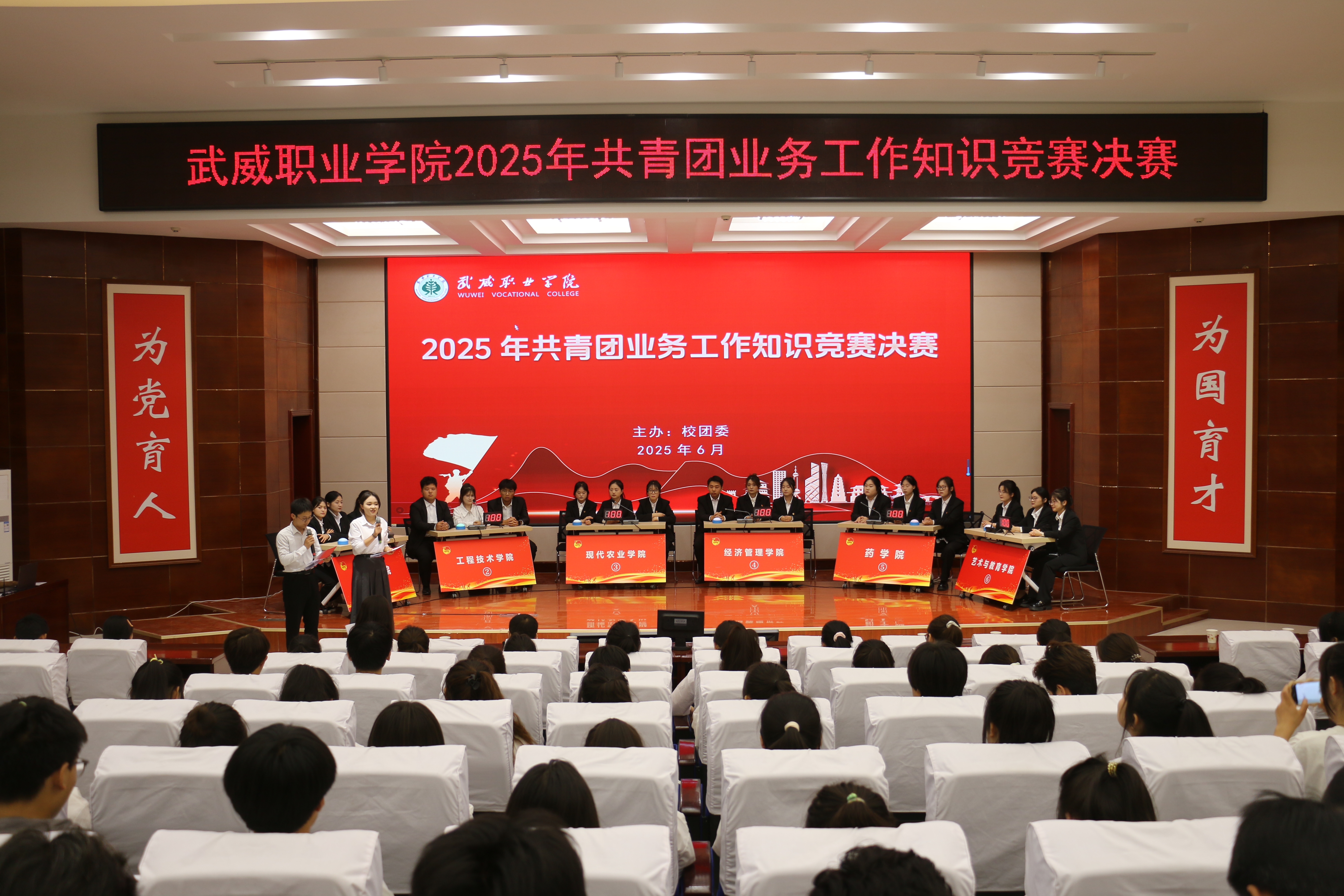 為進一步提升基層團干部業(yè)務(wù)知識水平,增強廣大團員青年歷史使命感與責任感。6月13日,校團委在菁英廳舉辦共青團業(yè)務(wù)知識競賽決賽,二級學(xué)院團委書記及團員代表200余人觀看比賽。