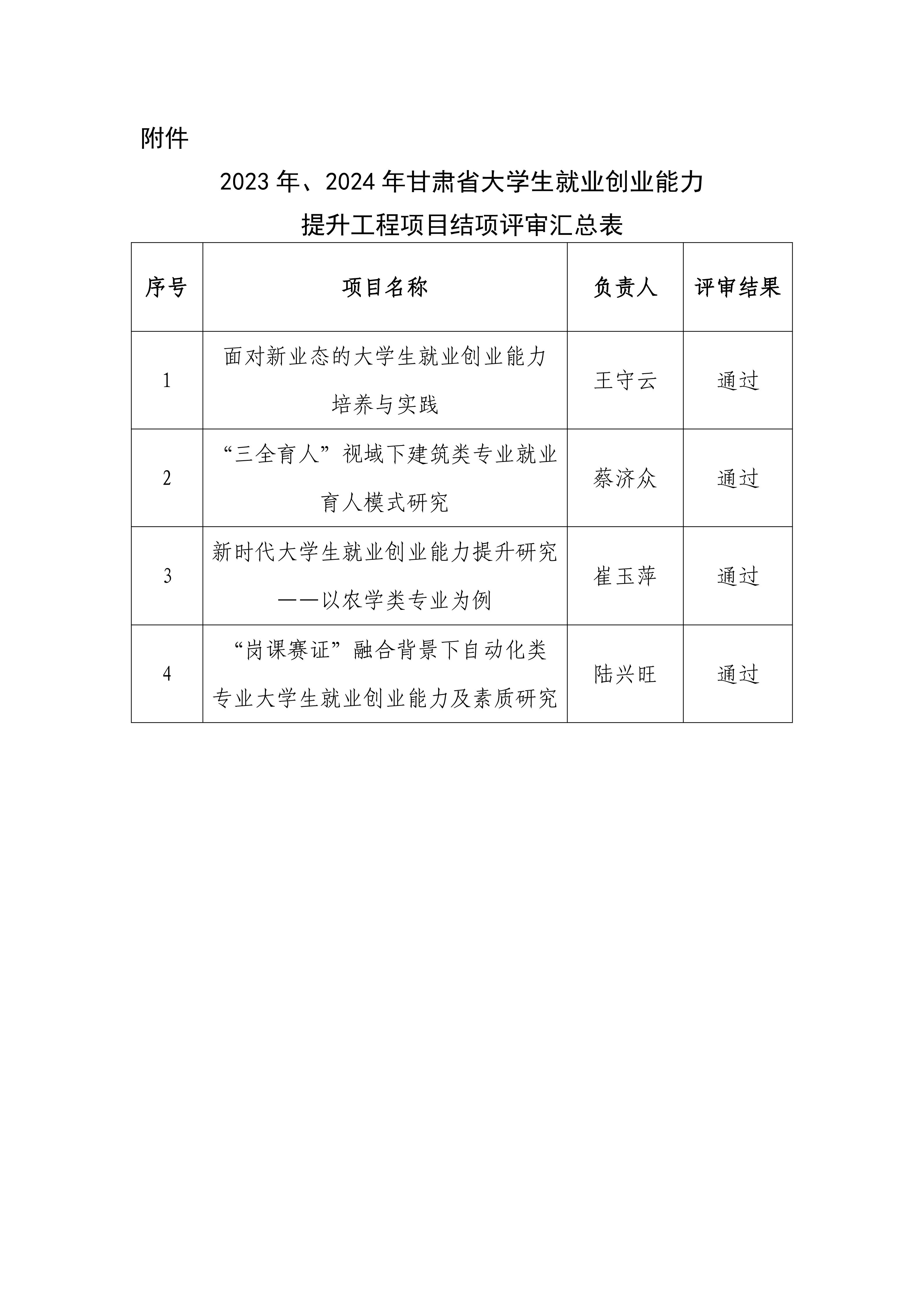 2023年、2024年甘肅省大學(xué)生就業(yè)創(chuàng)業(yè)能力提升工程項目結(jié)項評審結(jié)果公示