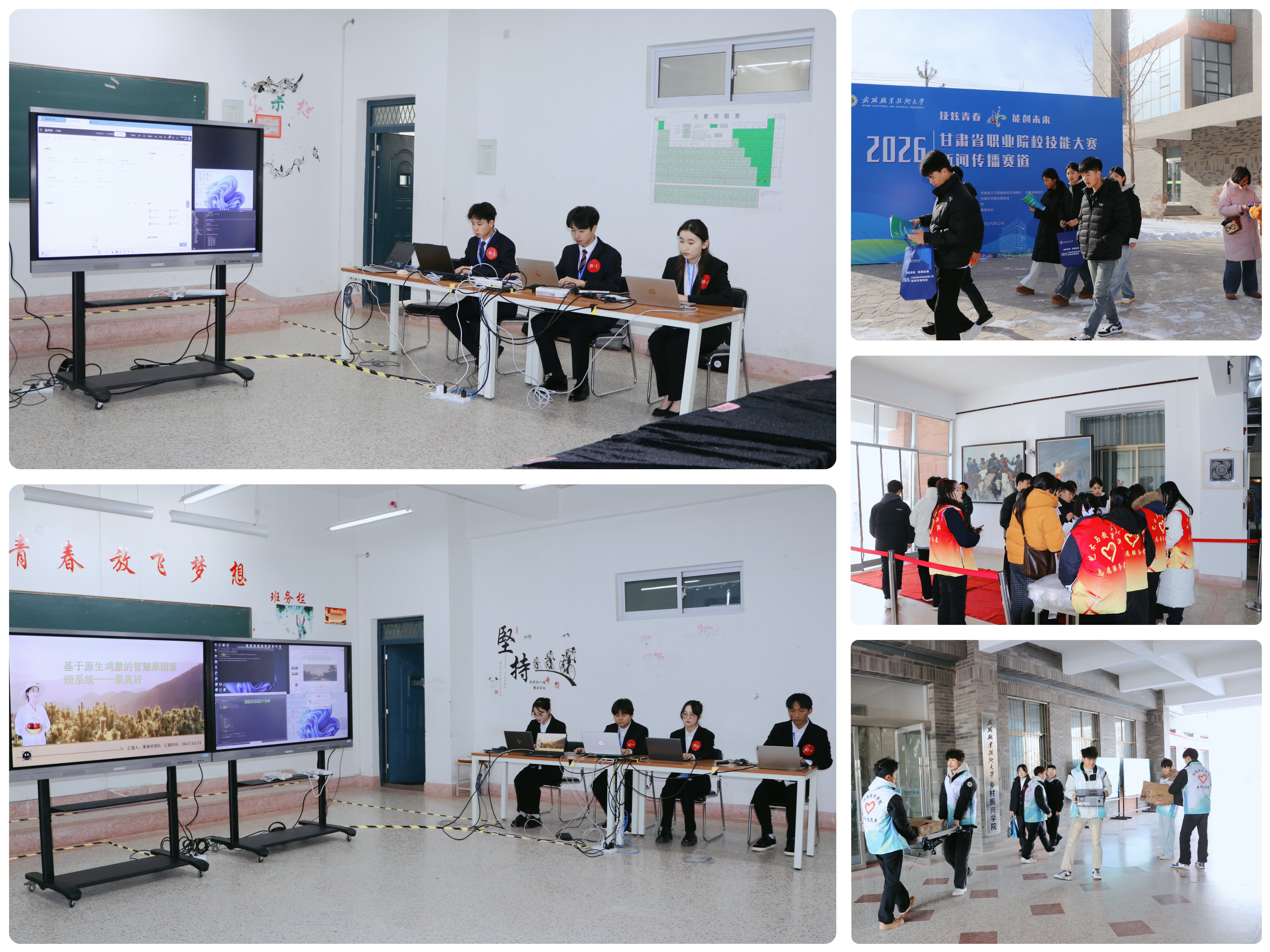 12月21日,學校黨委書記王宏帶隊深入學校承辦的甘肅省2026年職業(yè)院校技能大賽比賽現(xiàn)場,實地巡查高職組新聞傳播賽道、新一代信息技術(shù)賽道的比賽情況。賽點監(jiān)督仲裁組組長汪霞、成員王立榮、陳曉煜,學校教務(wù)處負責同志一同巡查。