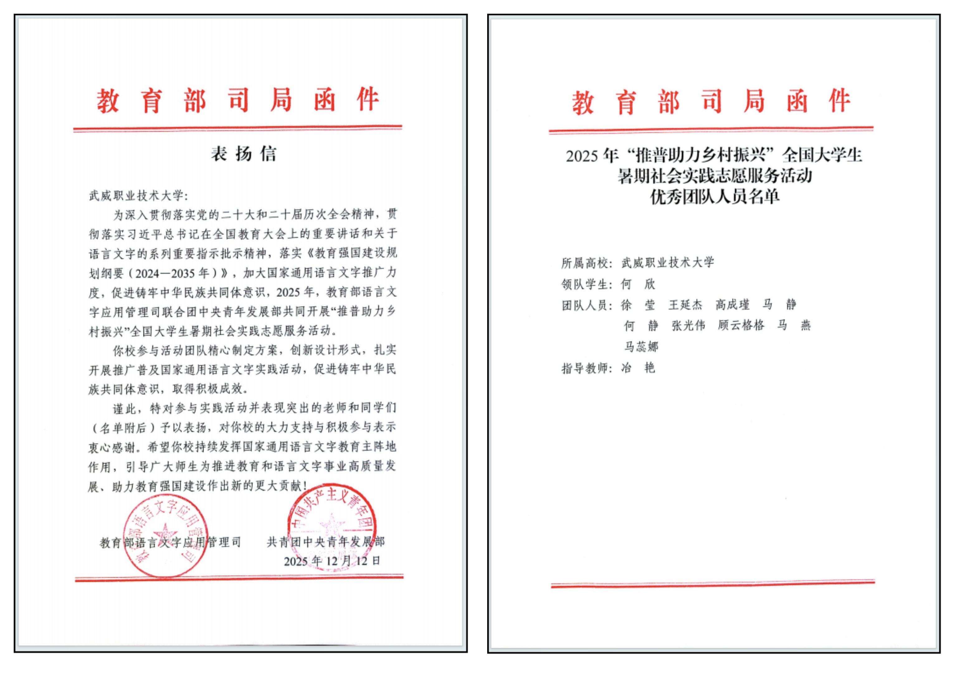 二、學(xué)校2025年“推普助力鄉(xiāng)村振興”全國大學(xué)生暑期社會實踐志愿服務(wù)活動首次獲國家級優(yōu)秀團隊表彰