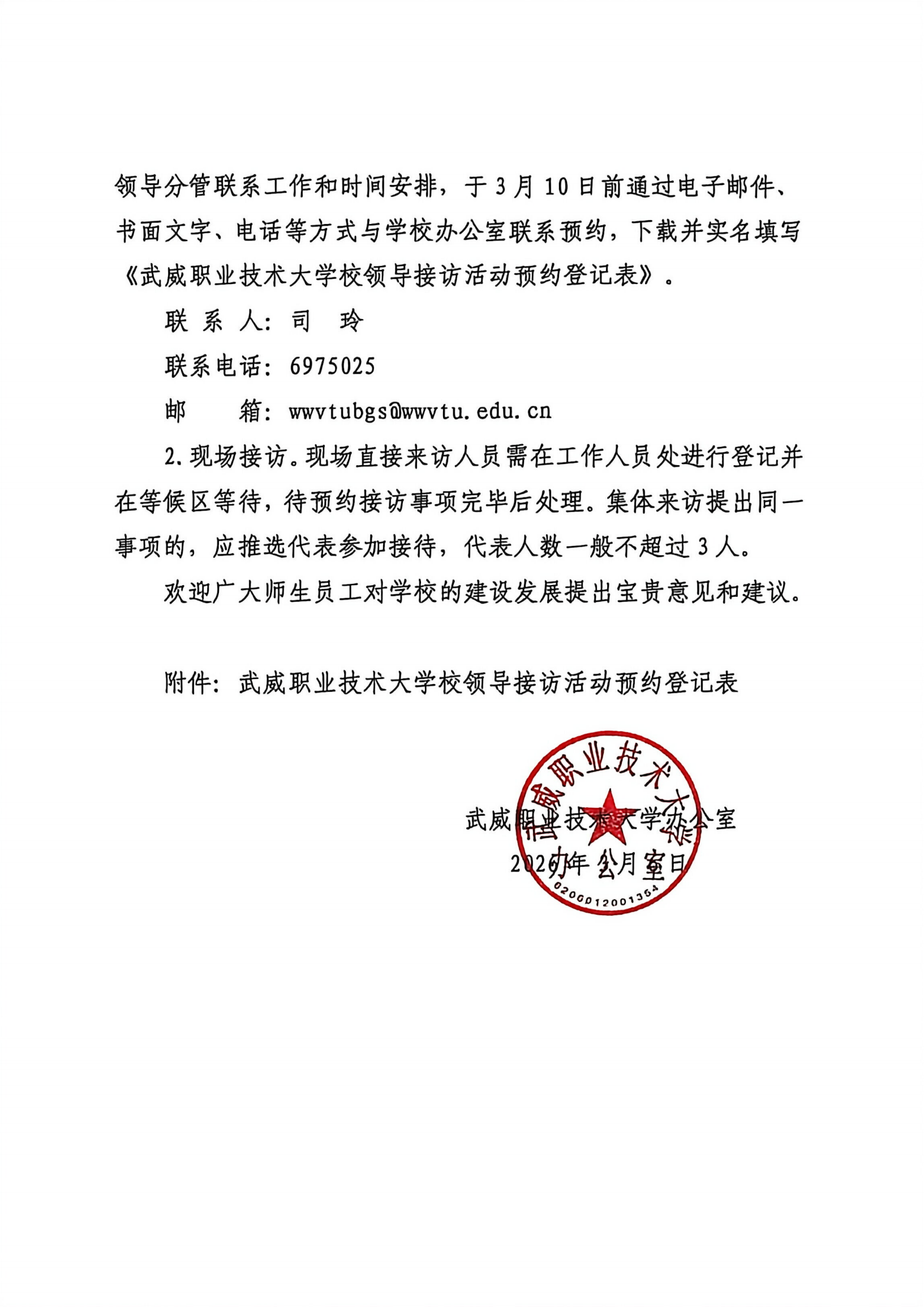 關(guān)于2025-2026學(xué)年第二學(xué)期第二周校領(lǐng)導(dǎo)接待日安排的通知