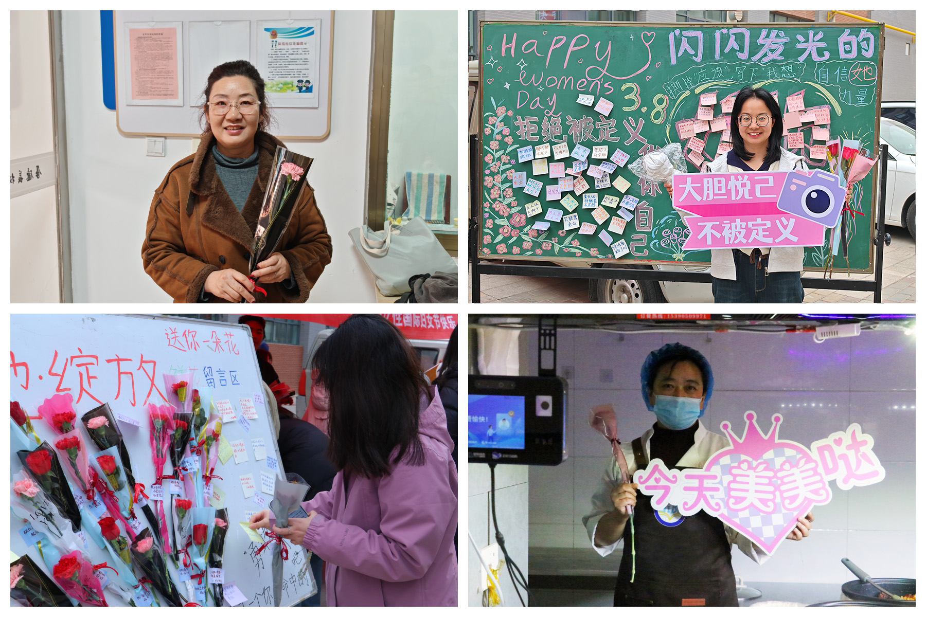 活動(dòng)不僅面向在校學(xué)生,更將關(guān)懷延伸至為校園日常默默奉獻(xiàn)的女性工作者。同學(xué)們特意為辛勤工作的食堂阿姨、宿管阿姨等送上了鮮花與節(jié)日的真摯祝福,感謝她們的付出,讓這個(gè)屬于全體女性的節(jié)日更加充滿溫情與敬意。