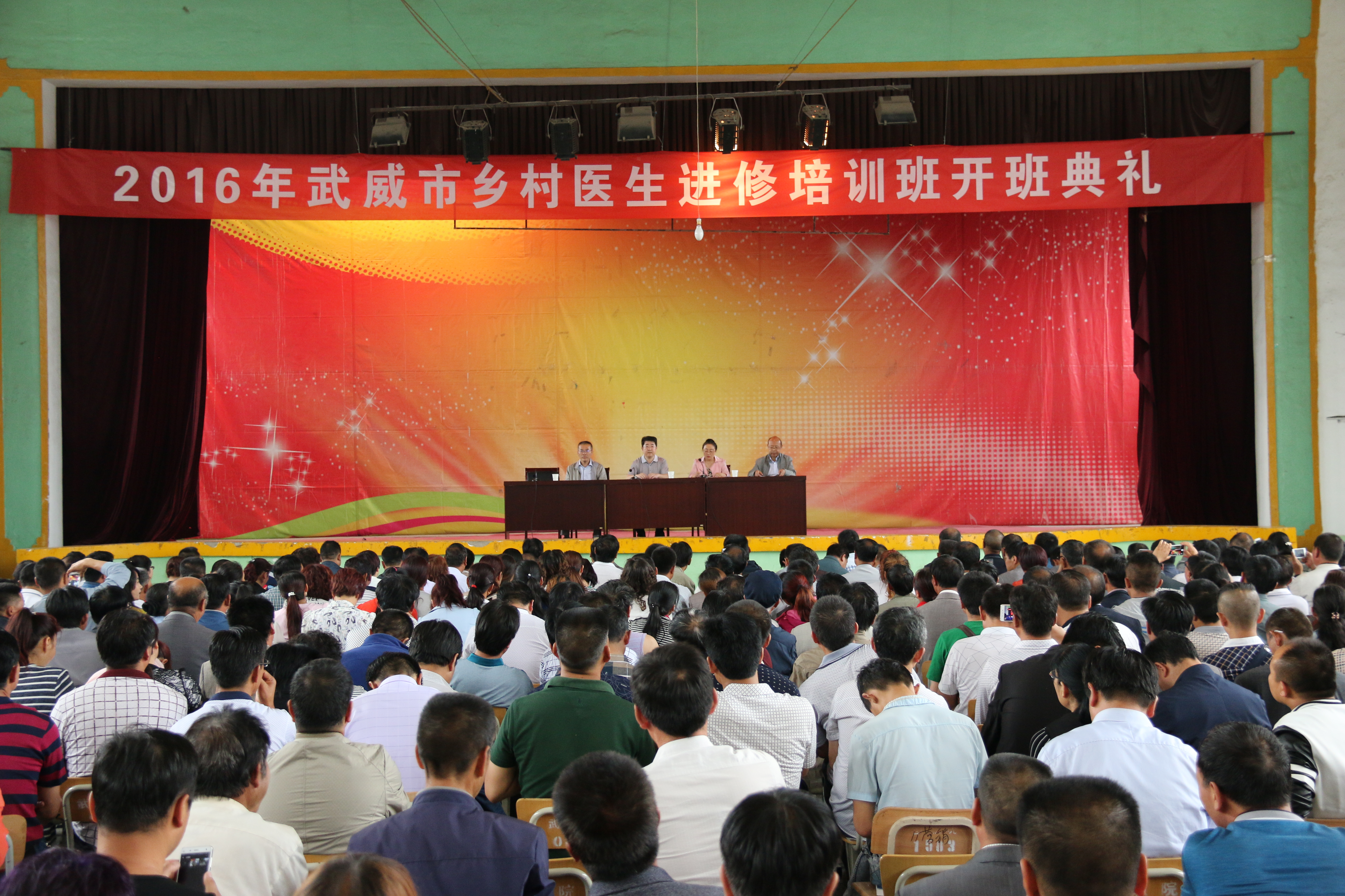 6月20日上午9:00,2016年武威市鄉(xiāng)村醫(yī)生進(jìn)修培訓(xùn)班開(kāi)班儀式在我院大禮堂舉行,本期培訓(xùn)的395名參訓(xùn)學(xué)員參加了開(kāi)班儀式。市衛(wèi)生計(jì)生委主任王平基、武威職業(yè)學(xué)院副院長(zhǎng)張偉鴻、市財(cái)政局社??瓶崎L(zhǎng)余偉出席開(kāi)班儀式并在主席臺(tái)就座。
