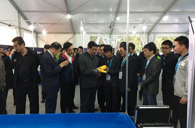 圖:全國(guó)政協(xié)前主席賈慶林一行蒞臨大賽現(xiàn)場(chǎng)參觀指導(dǎo)