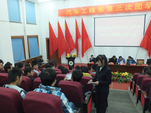 大會(huì)在莊嚴(yán)雄洪的國(guó)歌聲中開(kāi)幕,本次改選大會(huì)由候選人謝家亮主持。首先許成林老師致開(kāi)幕辭,宣布大會(huì)開(kāi)始。各位候選人對(duì)全體師生進(jìn)行自我介紹,來(lái)為自己競(jìng)選團(tuán)學(xué)干部拉票升勢(shì)。緊接著進(jìn)入上屆優(yōu)秀的團(tuán)干部進(jìn)行表彰獎(jiǎng)勵(lì),由上屆秘書(shū)長(zhǎng)蔣俊杰作了工作總結(jié)、學(xué)習(xí)部部長(zhǎng)白飛志、體育部部長(zhǎng)牛舂興、候選人李海龍依次宣讀與本次大會(huì)相關(guān)的問(wèn)題;隨后進(jìn)入投票環(huán)節(jié),其中有51名代表選出37名優(yōu)秀的學(xué)生干部。最后是緊張的“投票與唱票”環(huán)節(jié),并由劉吉仁老師宣布結(jié)果:“本屆學(xué)生會(huì)改選大會(huì)51票高數(shù)通過(guò),37名同學(xué)當(dāng)選學(xué)生會(huì)干部。汽車(chē)工程系團(tuán)學(xué)會(huì)在充滿希望的同時(shí)會(huì)有更大的創(chuàng)新。