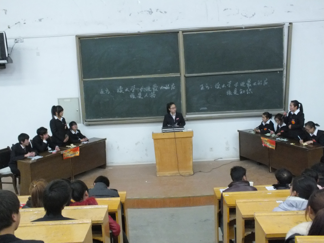 11月28日晚,我院第五屆大專辯論賽復(fù)賽第二場(chǎng)比賽在西階梯教室舉行。此次辯論賽,電信系作為正方以“讀大學(xué)生長(zhǎng)進(jìn)最大的是知識(shí)”為辯題,我系作為反方以“讀大學(xué)生長(zhǎng)進(jìn)最大的是人格”為辯題。雙方就此展開(kāi)了激烈的辯論。