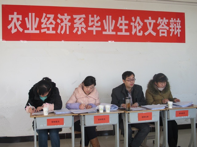 12月13日,農(nóng)業(yè)經(jīng)濟(jì)系進(jìn)行了2012級綠色食品生產(chǎn)與檢驗大專班暨“2015屆畢業(yè)生畢業(yè)設(shè)計答辯工作”。本次參加我系畢業(yè)設(shè)計答辯的學(xué)生共有61人,完成論文33篇。