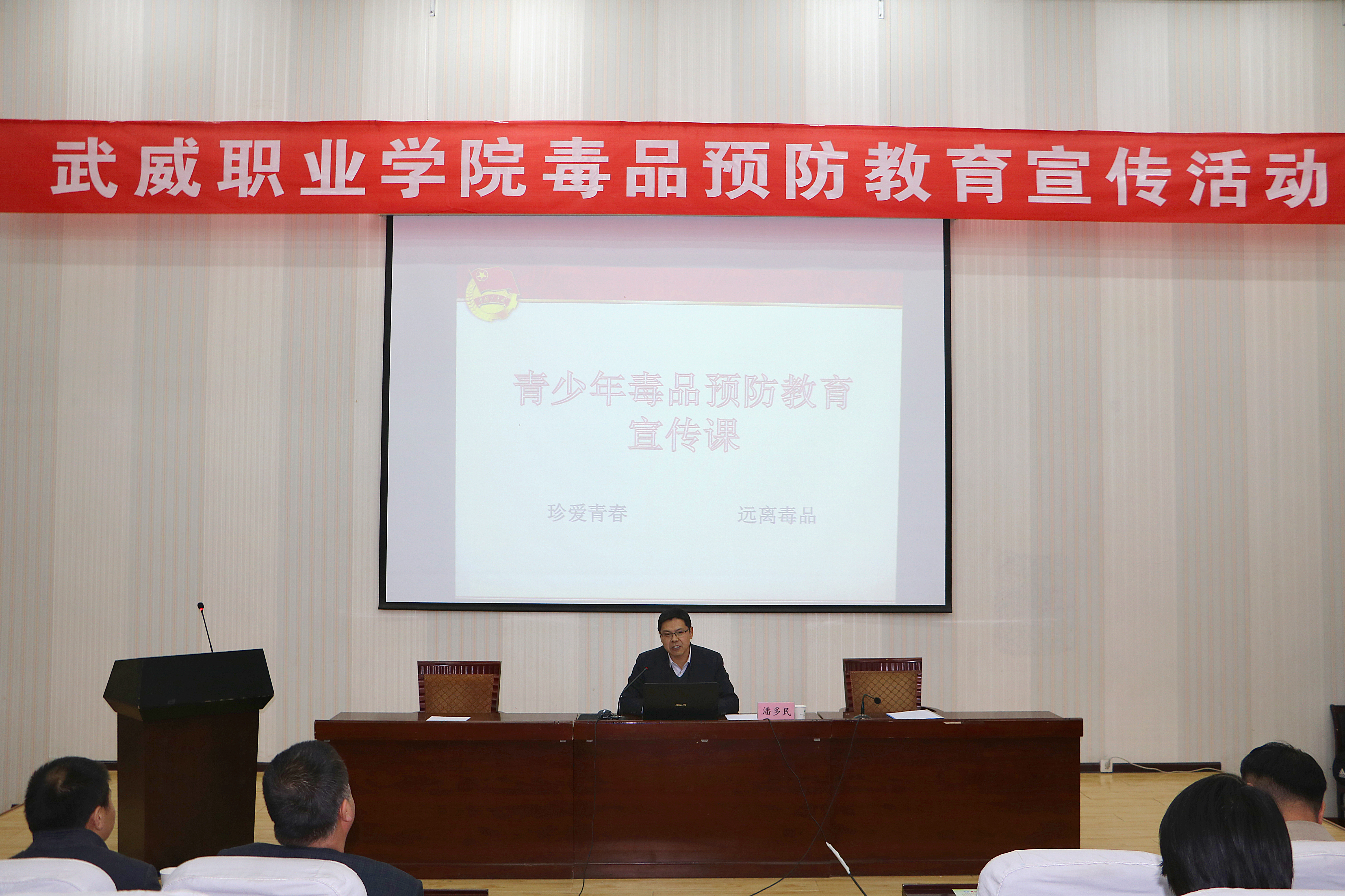 3月30日下午,院團(tuán)委聯(lián)合學(xué)生工作處、保衛(wèi)處在正德廳舉辦武威職業(yè)學(xué)院毒品預(yù)防教育宣傳活動(dòng),團(tuán)市委書記潘多民出席活動(dòng)并授課,學(xué)院各級(jí)團(tuán)干部270多人參加了活動(dòng)?;顒?dòng)由學(xué)生工作處處長(zhǎng)王守云主持。