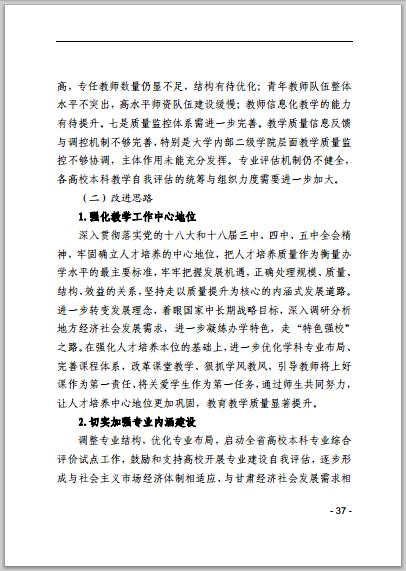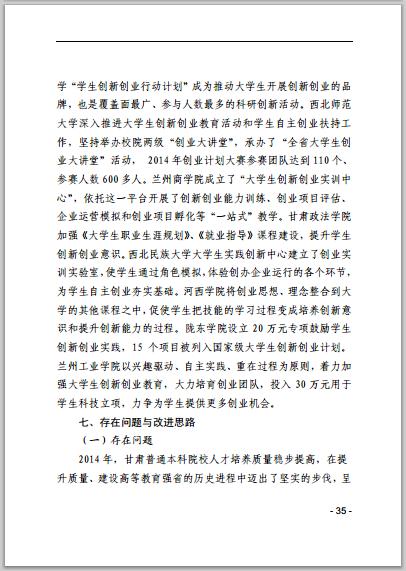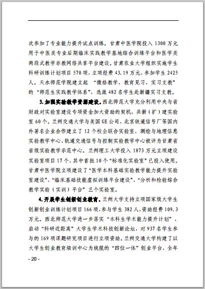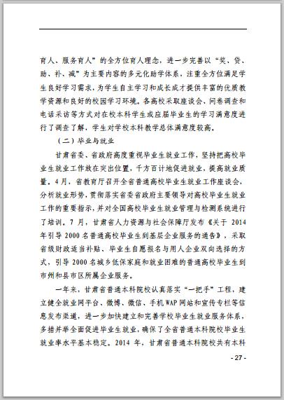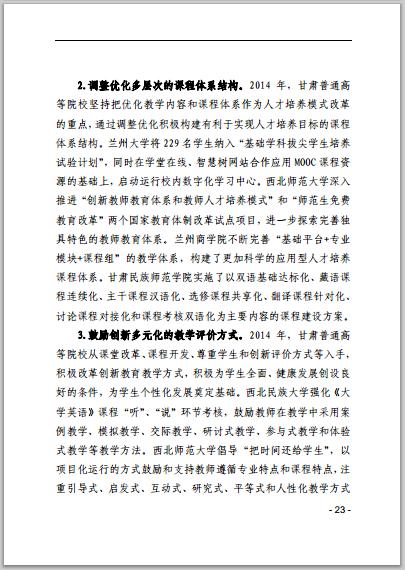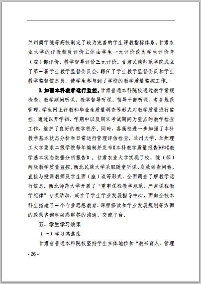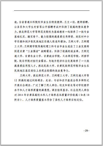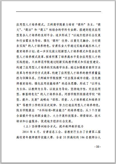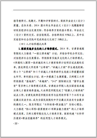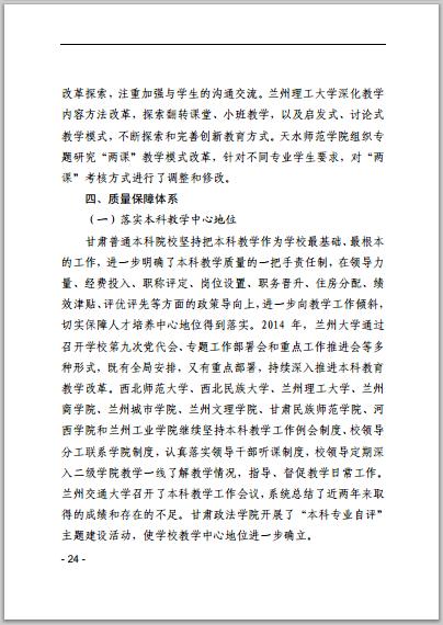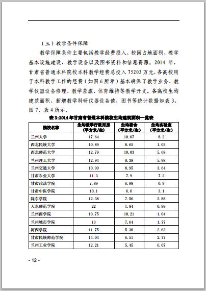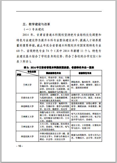 甘肅省普通高等學校2014年本科教學質(zhì)量報告