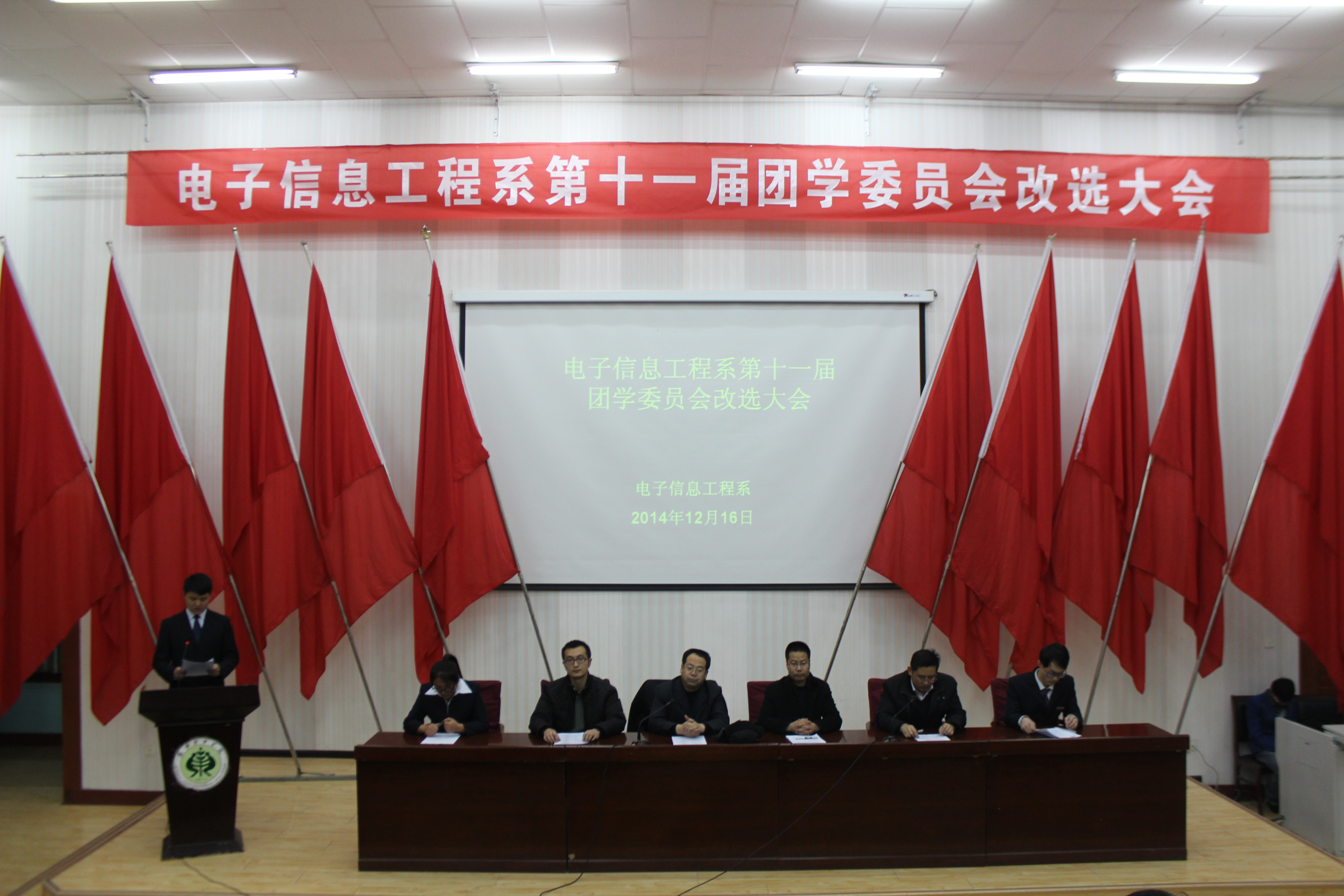 會議在莊嚴(yán)的國歌聲中拉開了帷幕。電子信息工程系團(tuán)總支書記唐宗舜老師首先致開幕詞,巨星星、李向龍同學(xué)分別代表上屆團(tuán)總支學(xué)生會做了工作匯報,對上一年的工作進(jìn)行了總結(jié)。同時本次大會產(chǎn)生了第十一屆團(tuán)、學(xué)委員會成員。新當(dāng)選學(xué)生會主席陳利龍同學(xué)和新當(dāng)選團(tuán)總支副書記王鵬飛同學(xué)進(jìn)行了就職演講。