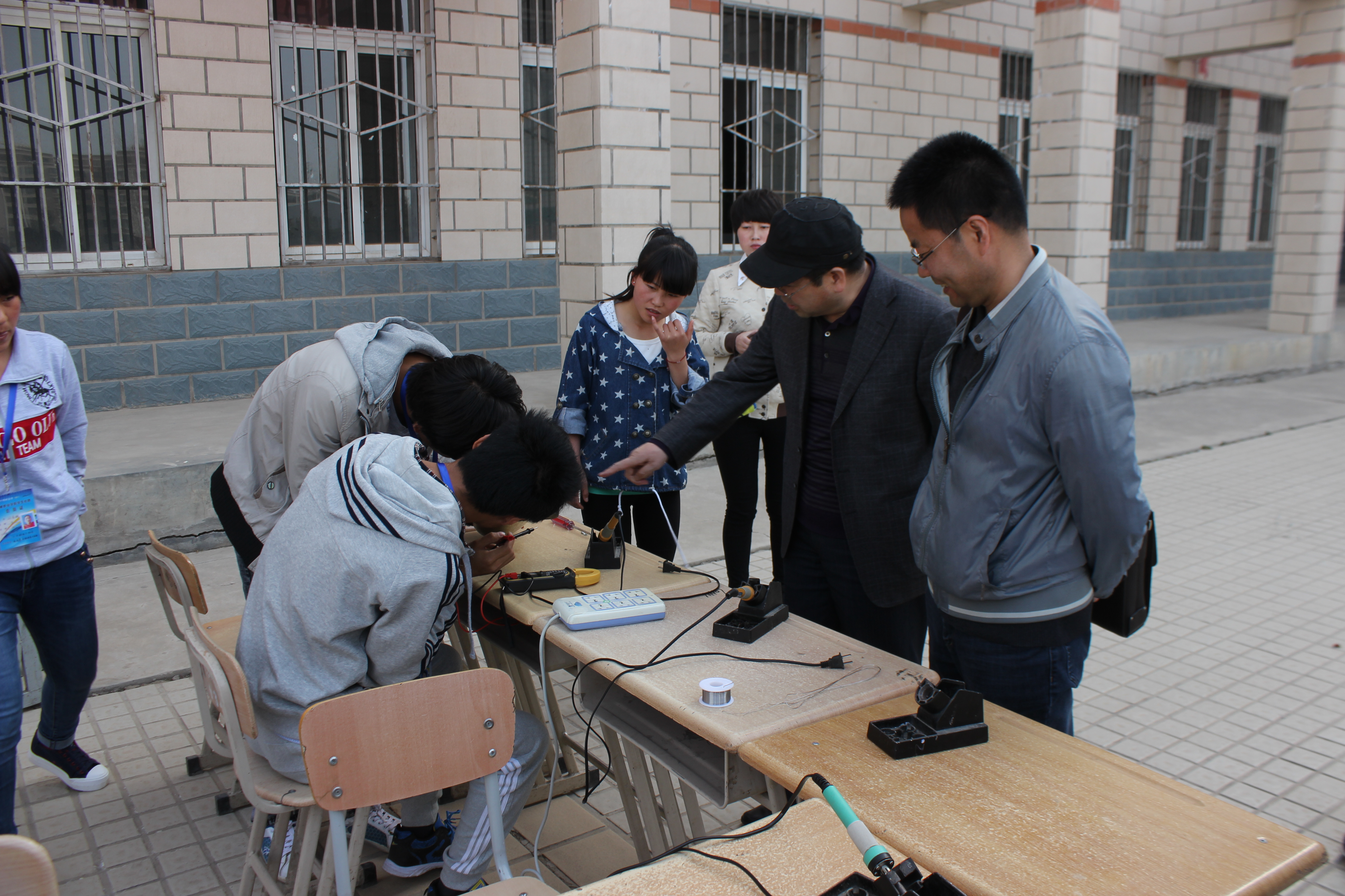 為引導廣大團員青年積極參與青年志愿活動,發(fā)揚雷鋒精神,弘揚民族精神。4月15日至17日電子信息工程系小牛頓電子協(xié)會、青年志愿者協(xié)會在學院尚德樓北側廣場舉辦了“義務維修”活動。小牛頓電子協(xié)會結合協(xié)會自身特色,運用所學的專業(yè)技能,為全院師生免費維修各類小電器。主要維修的電器有:臺燈、耳機、MP3、充電器、音響、電吹風等?;顒右婚_始就吸引很多師生前來詢問,活動現(xiàn)場氣氛融洽,維修員們都忙的不亦樂乎,他們在各自的戰(zhàn)場上,揮灑著熱情、傾注著努力。