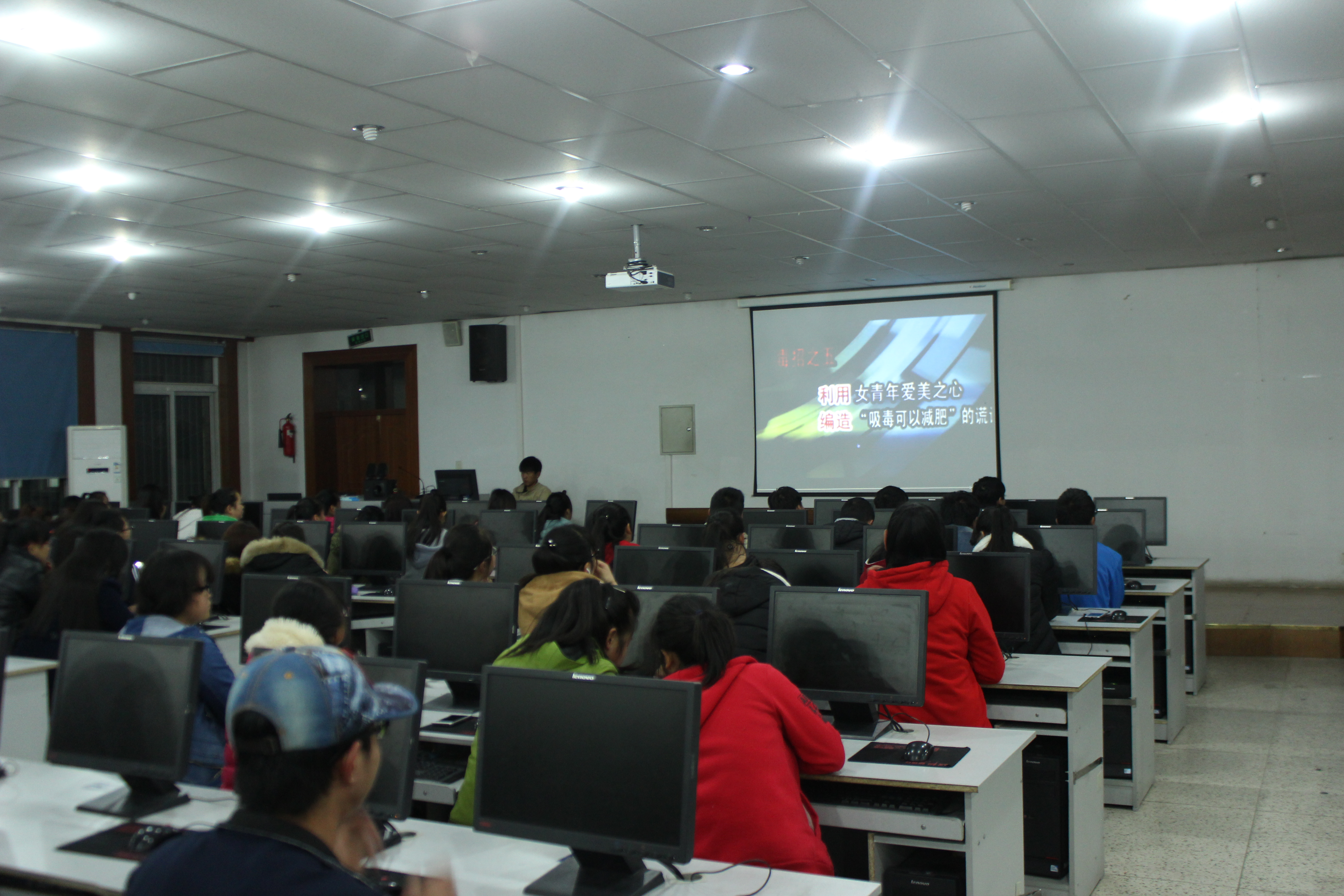2.組織學生觀看中國禁毒網(wǎng)相關(guān)禁毒教育動畫、視頻。讓同學們了解吸毒的危害,讓吸毒人員的痛苦活生生地展現(xiàn)在學生面前,學生親眼目睹了吸毒人員的生活,親耳聆聽了吸毒人員的述說,這些都深深震撼了我們學生的心靈,通過這樣場面,學生對毒品有了更深刻的認識,對吸毒的危害有了深刻的體會。通過觀看毒品危害相關(guān)教育視頻,同學們都表達了拒毒、禁毒的決心,表示積極打擊吸、販毒行為,讓毒品在我們的生活中消失。