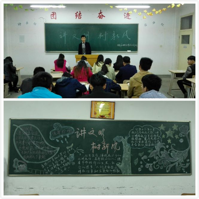 3月6日,電信系各班團支部進行了文明禮儀宣傳教育,組織團員青年以多種形式召開“講文明,樹新風”主題班會活動,引導青年學生文明用語、文明做事、樹立文明形象。