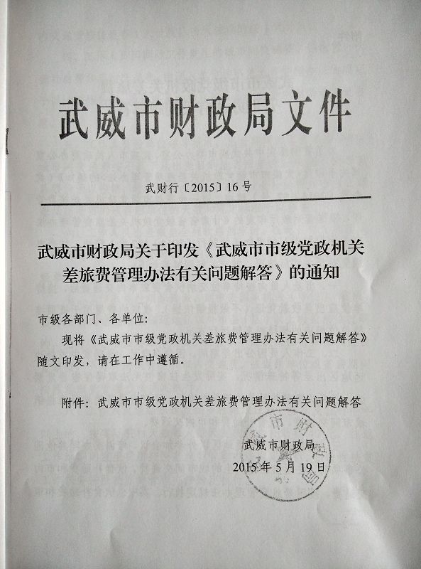<轉(zhuǎn)發(fā)>武威市市級黨政機關(guān)差旅費管理辦法有關(guān)問題解答