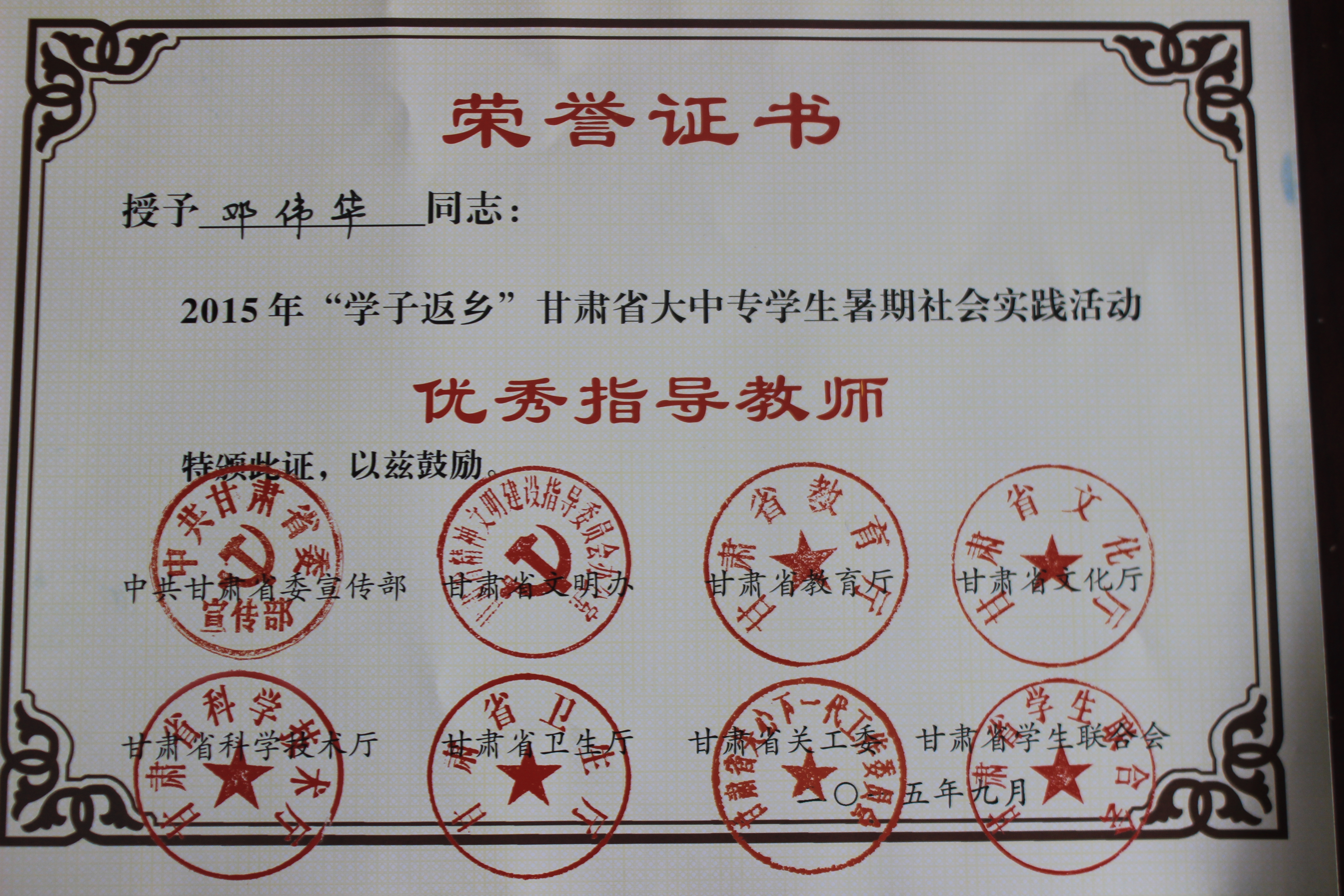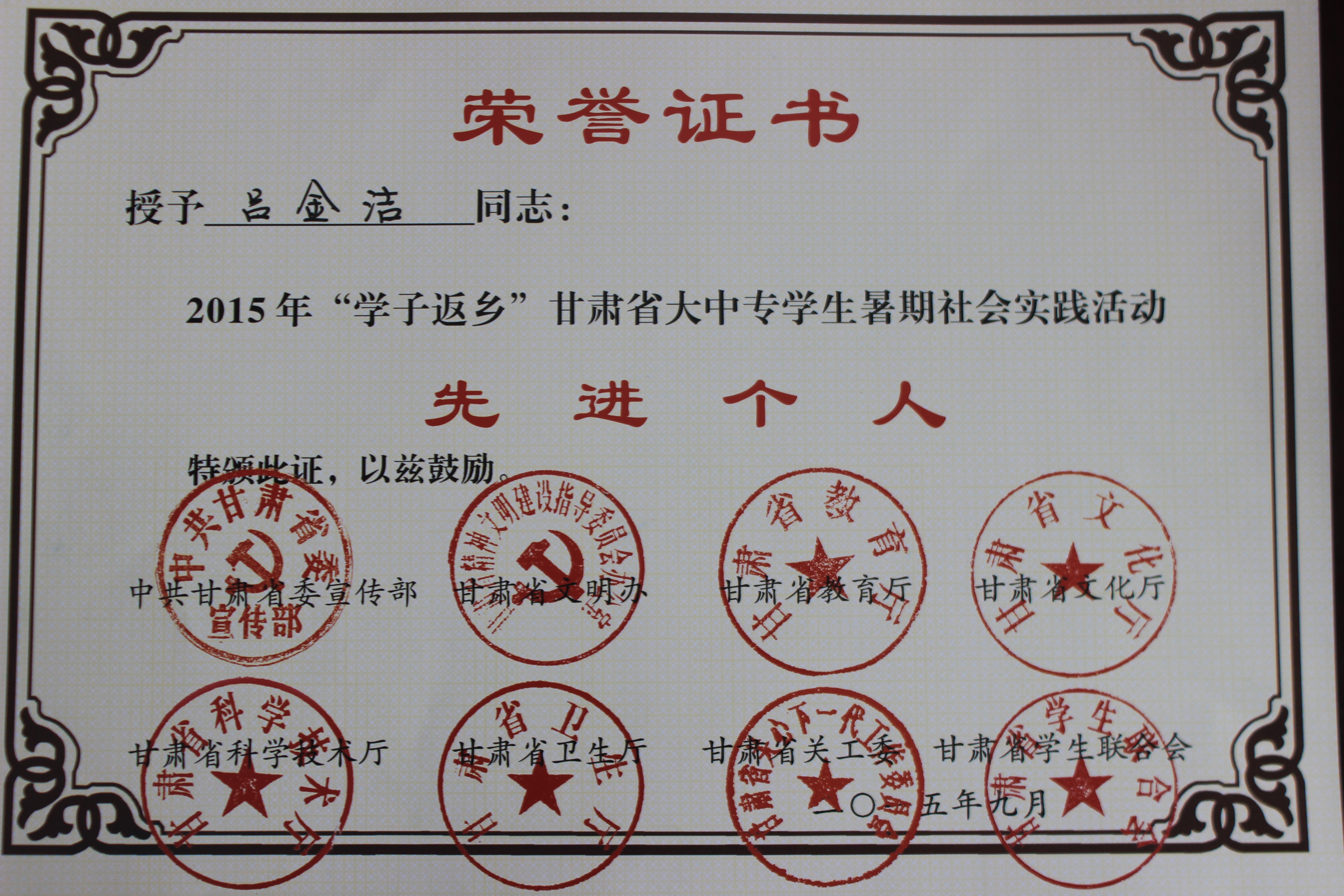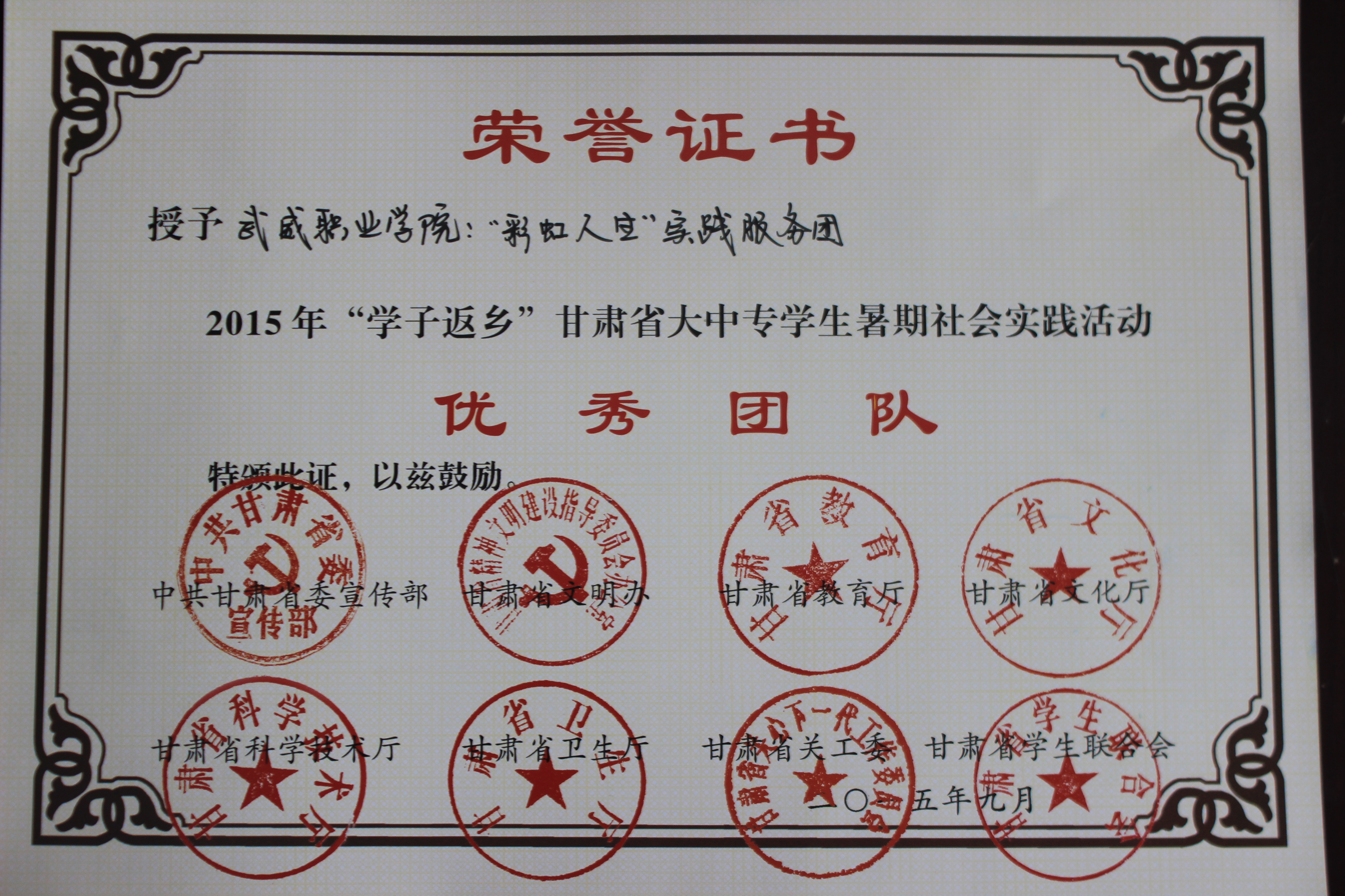 2015年“學子返鄉(xiāng)”甘肅省大中專學生暑期社會實踐活動-優(yōu)秀團隊