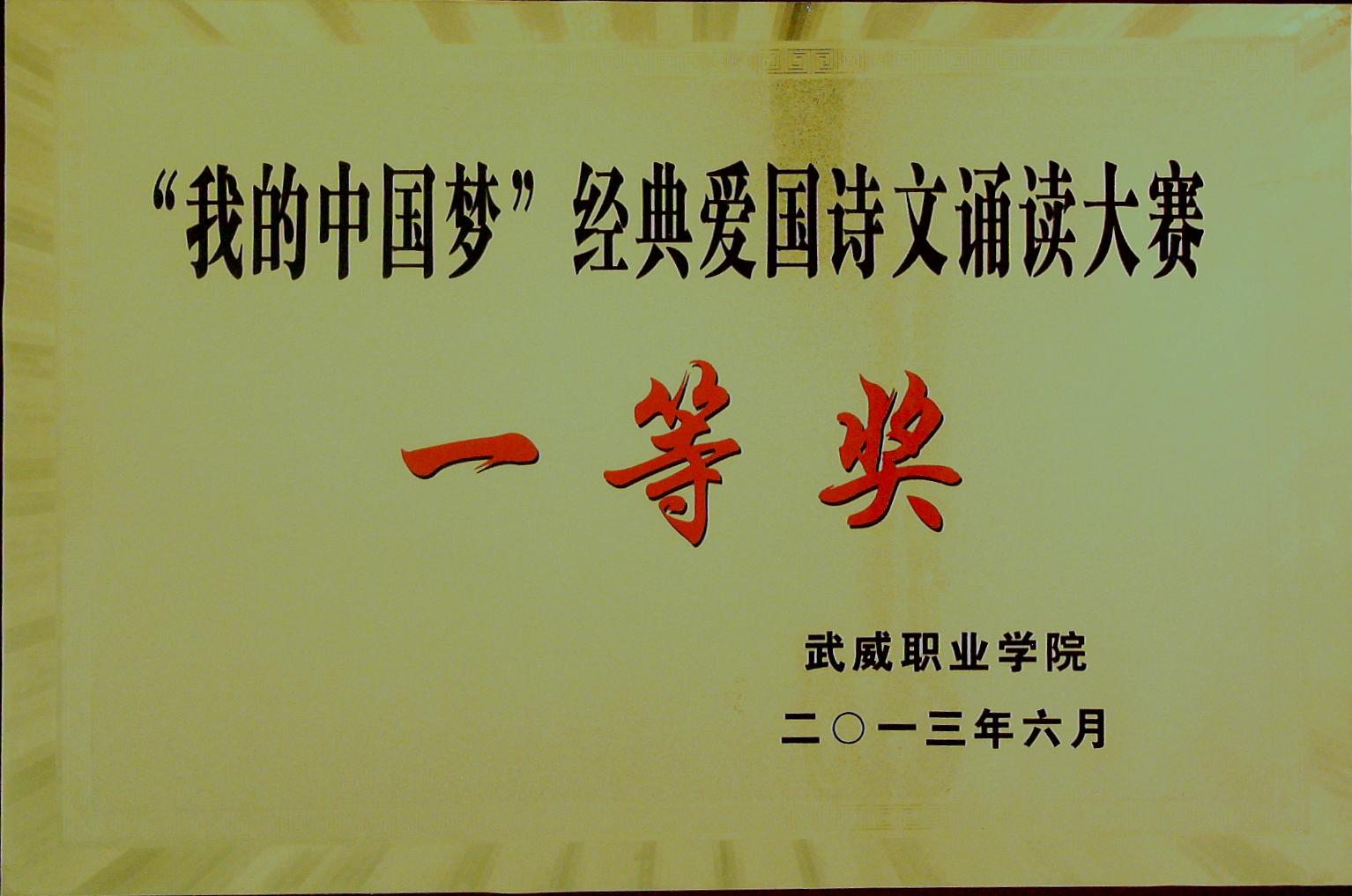 “我的中國夢”經典愛國詩文誦讀大賽一等獎