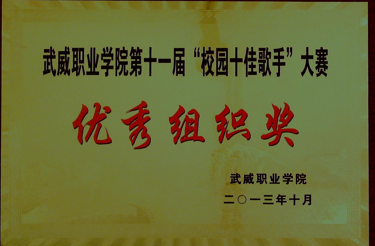 第十一屆“校園十佳歌手”大賽優(yōu)秀組織獎