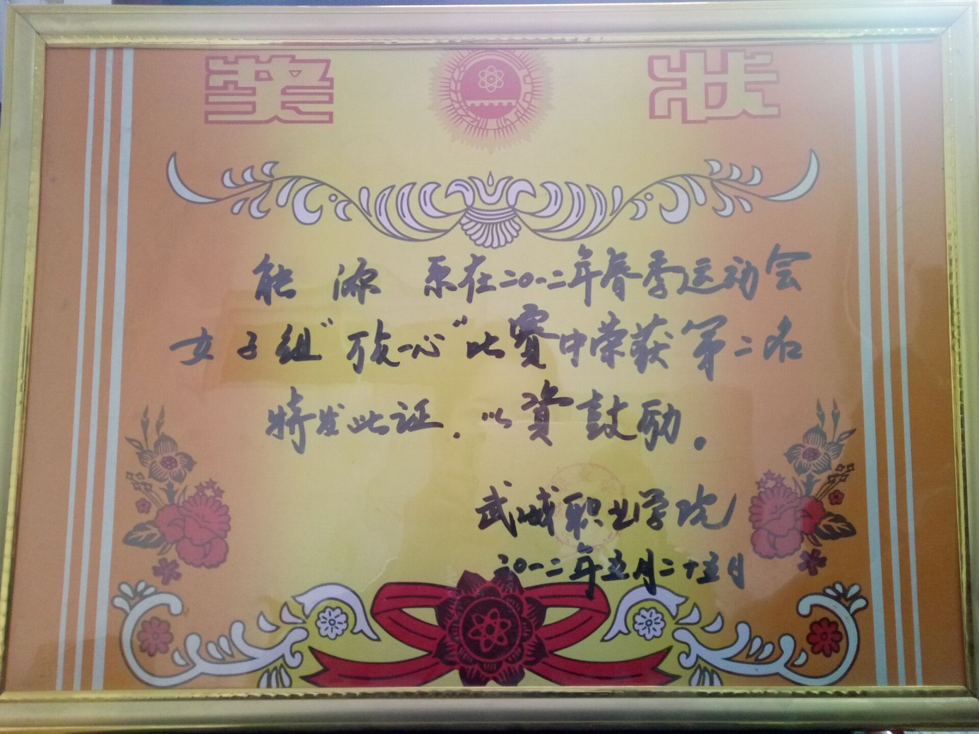 我系代表隊(duì)在2012年春季運(yùn)動會“團(tuán)結(jié)一心”比賽榮獲第二名