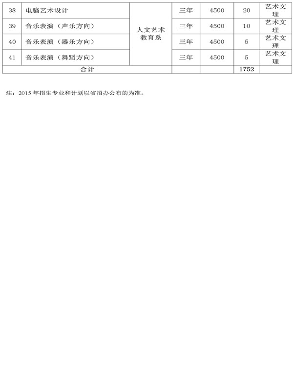 武威職業(yè)學院2015年招生計劃表