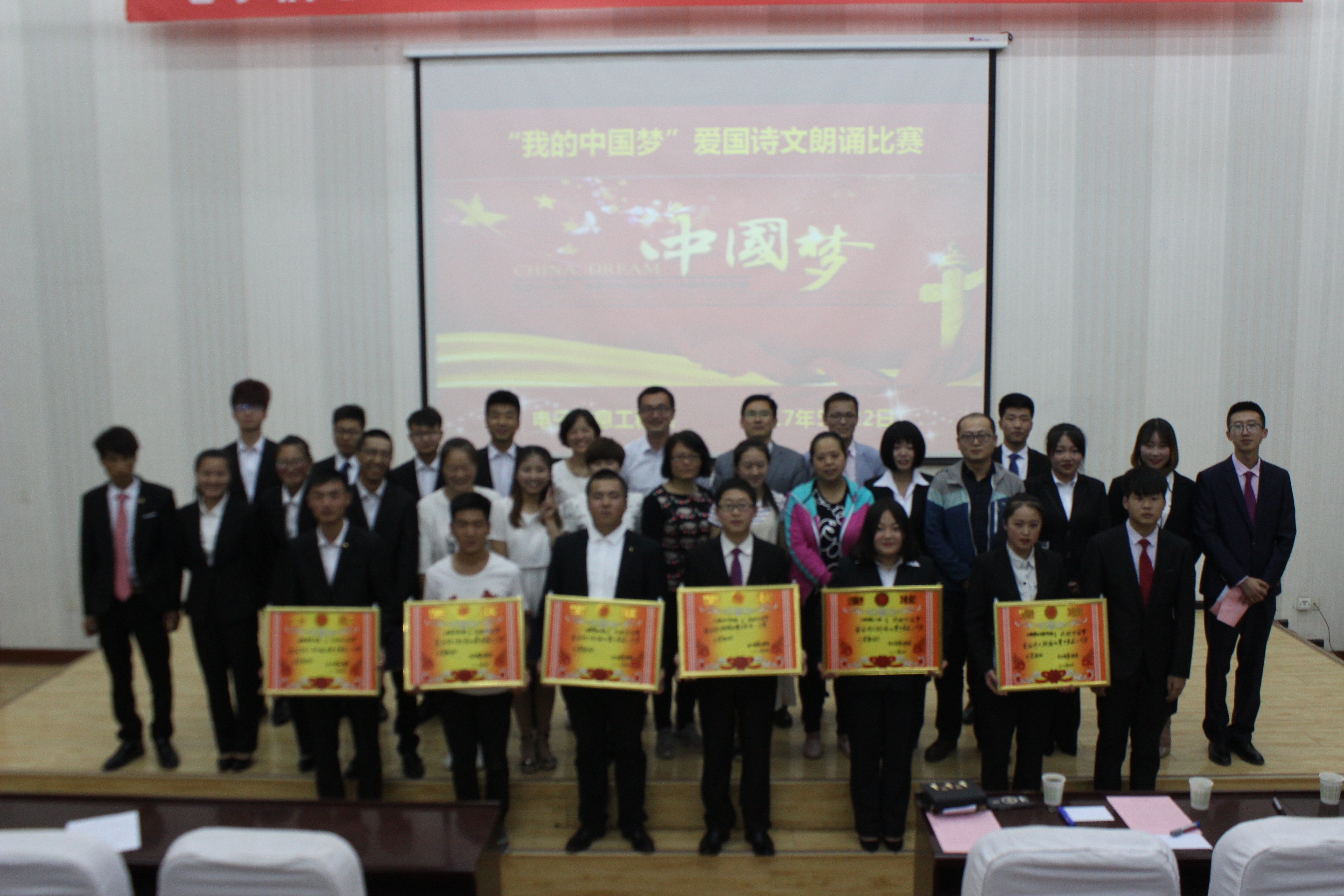 為進(jìn)一步培育和弘揚(yáng)社會(huì)主義核心價(jià)值觀,讓學(xué)生在誦讀中觸摸中國傳統(tǒng)文化,增強(qiáng)愛國主義情懷,提升學(xué)生的文化底蘊(yùn)和人文素養(yǎng),深入開展中國特色社會(huì)主義宣傳教育,電子信息工程系于5月22日在正德廳舉辦了“我的中國夢”愛國詩文朗誦比賽。系輔導(dǎo)員、班主任擔(dān)任本次比賽評委,2016級全體學(xué)生觀看了比賽。
