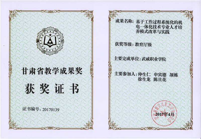 甘肅省教學(xué)成果獎-基于工作過程系統(tǒng)化的機電一體化技術(shù)專業(yè)人才培養(yǎng)模式改革與實踐