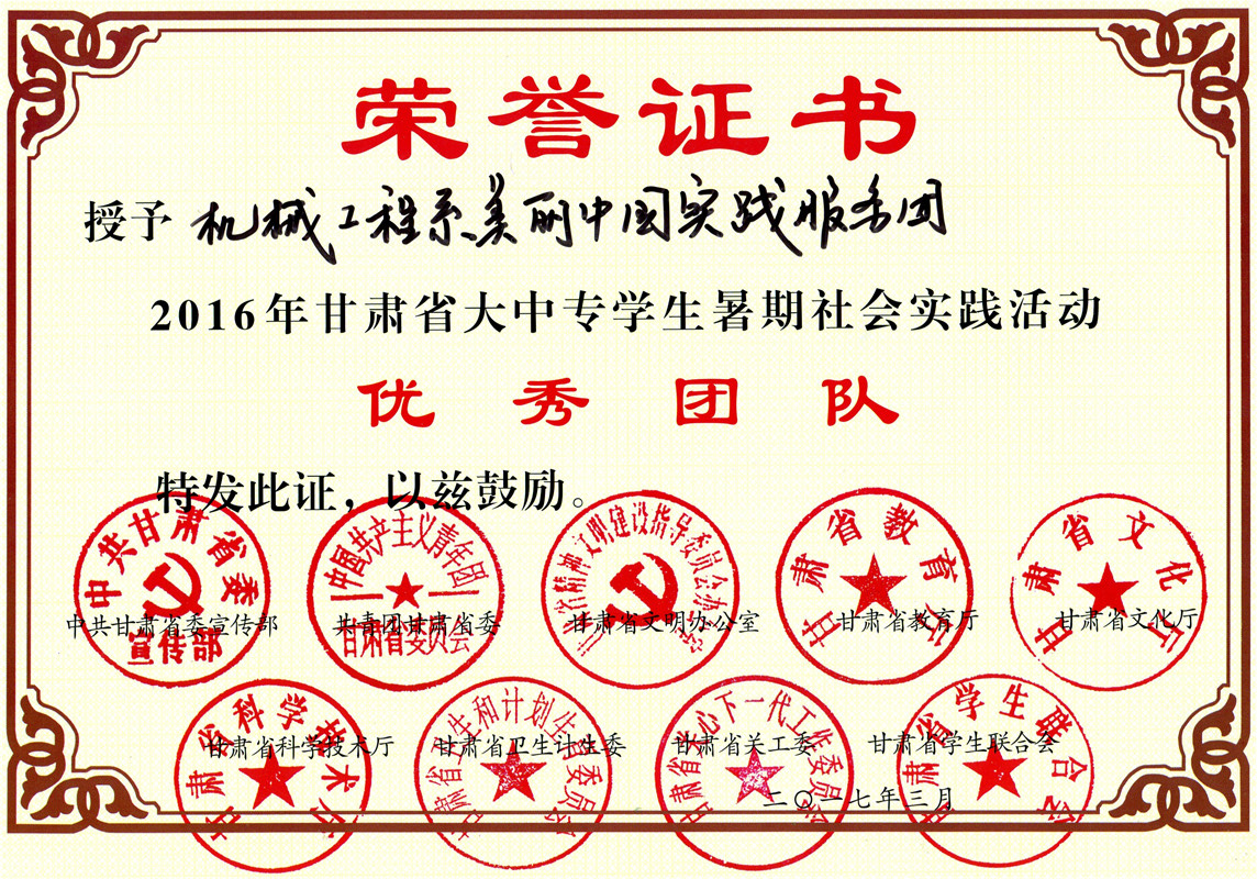 甘肅省大中專學(xué)生暑期社會實踐活動優(yōu)秀團隊---機械制造系美麗中國實踐服務(wù)團
