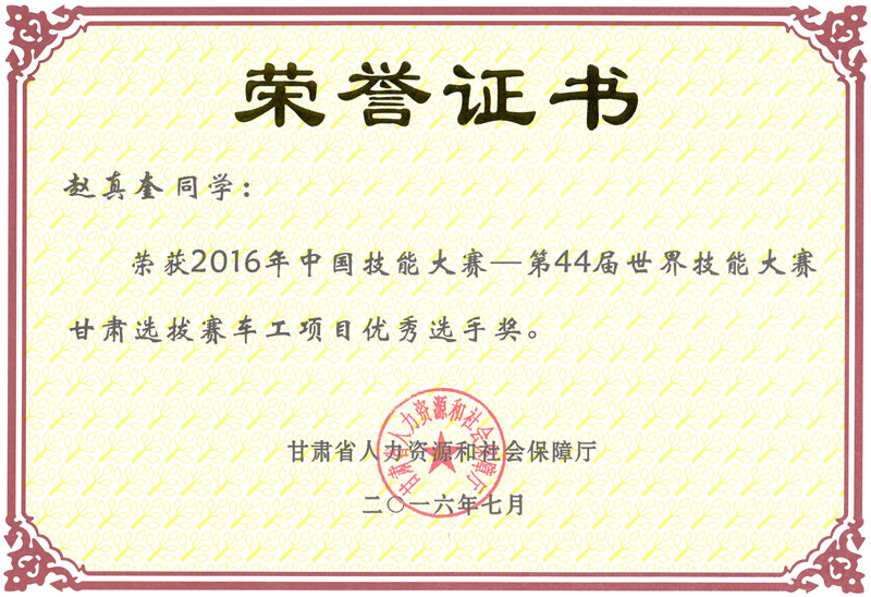 - 下一篇:第44屆世界技能大賽甘肅選拔賽焊接項(xiàng)目?jī)?yōu)秀獎(jiǎng)[ 06-21 ]